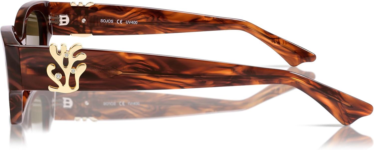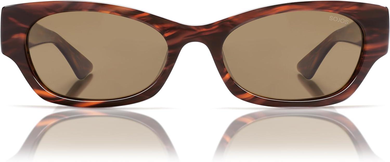 imageSOJOS Acetate Polarized Retro Sunglasses for Women Cateye Narrow UV400 Protection Sun Glasses Fire CoralOrangeBrown