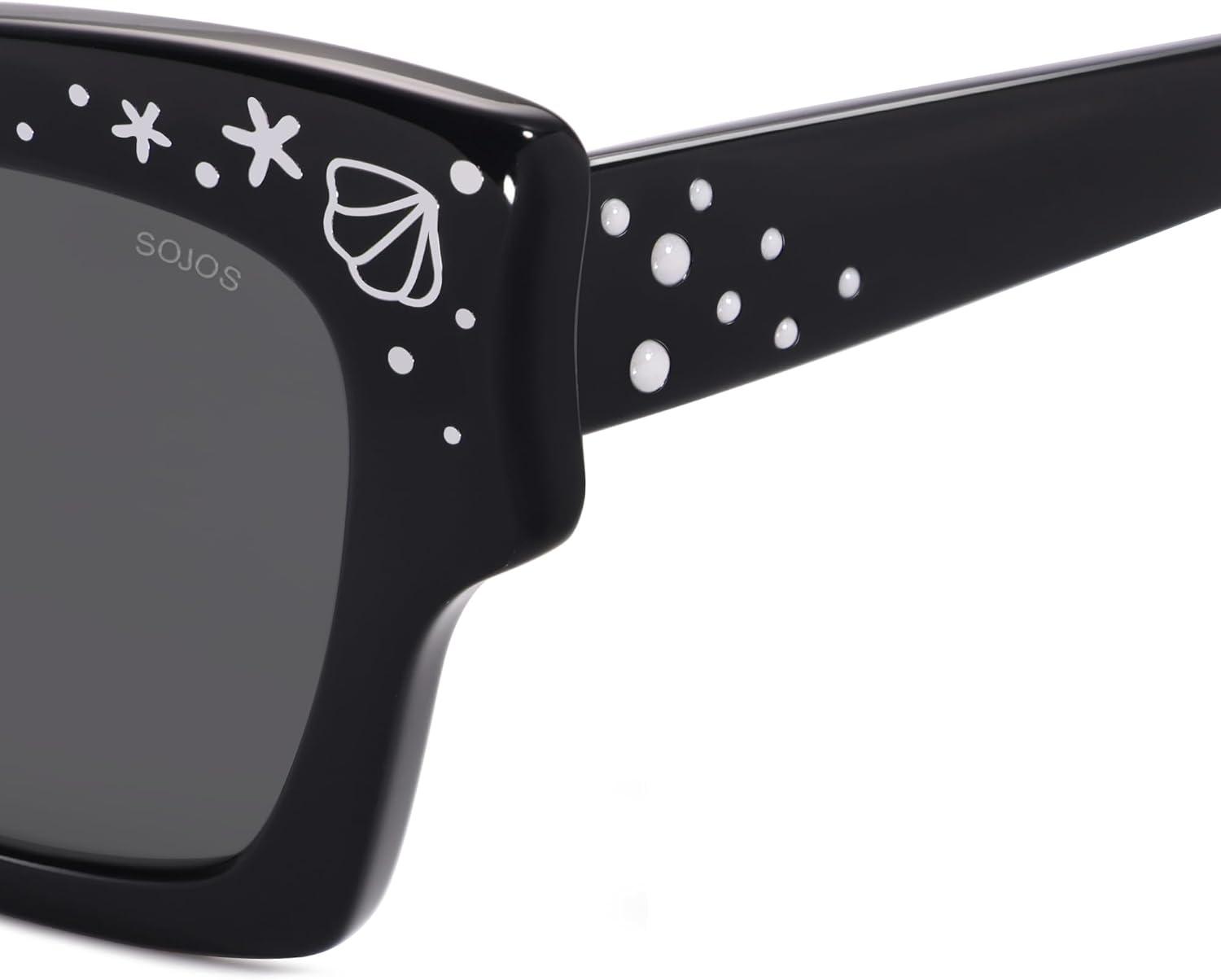 SOJOS Acetate Square Cat Eye Sunglasses for Women Polarized Sunglasses with Pearl Accents, UV400 Protection, MELODY(Black/Grey)