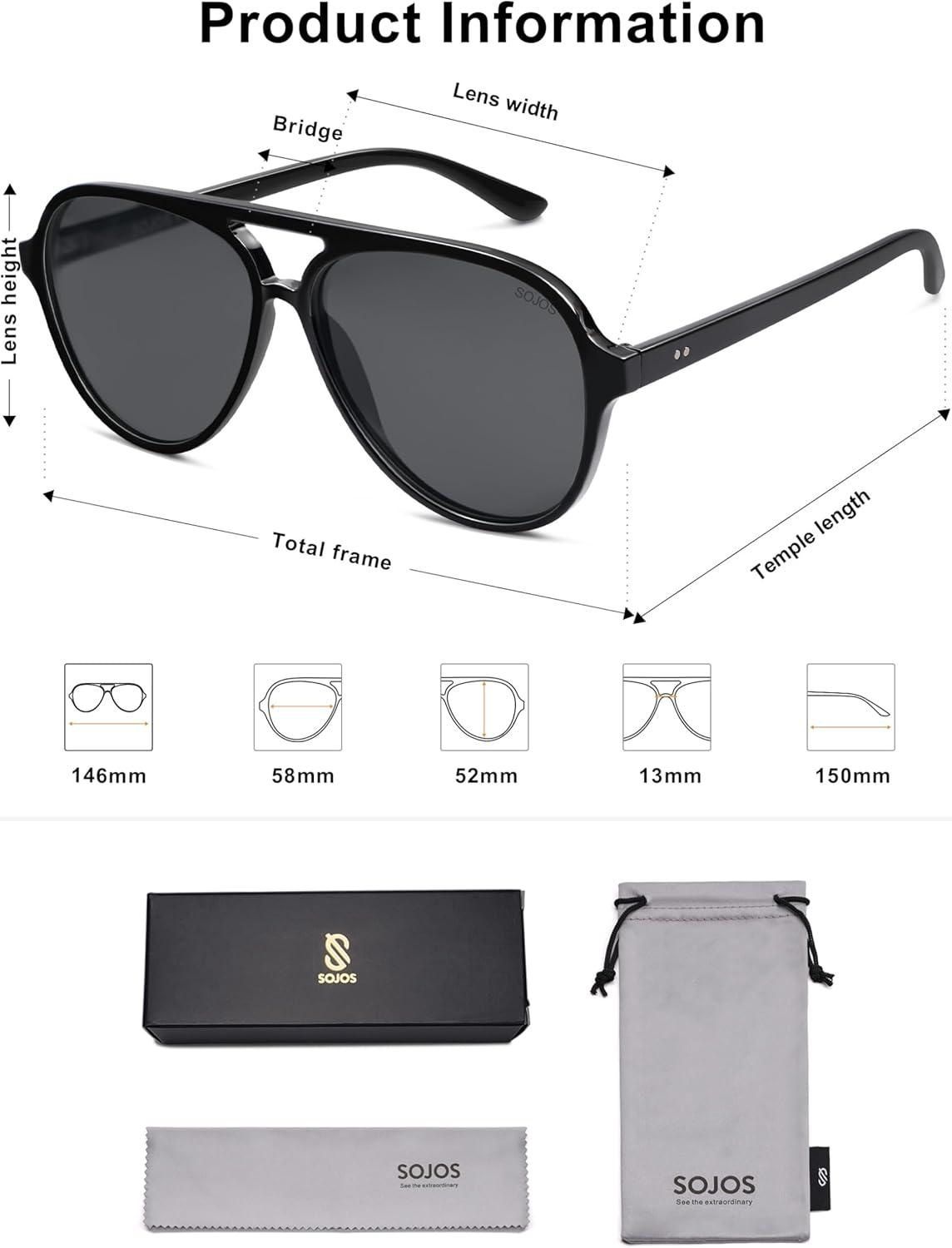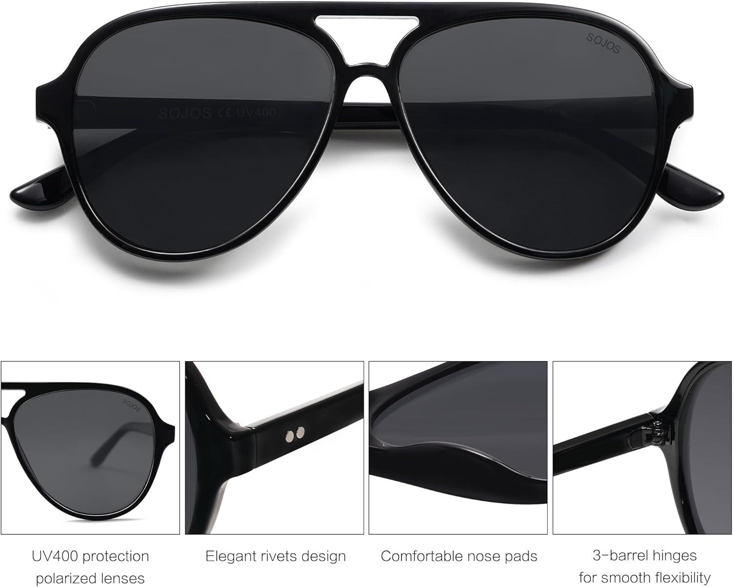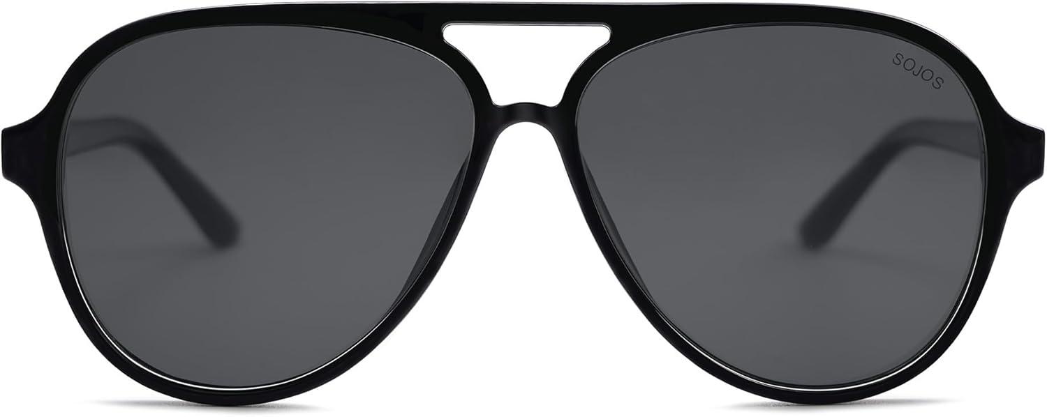 SOJOS Classic Polarized Aviator Sunglasses for Women Men, Retro Trendy Aviators Shades SJ2201(Black/Dark Grey)