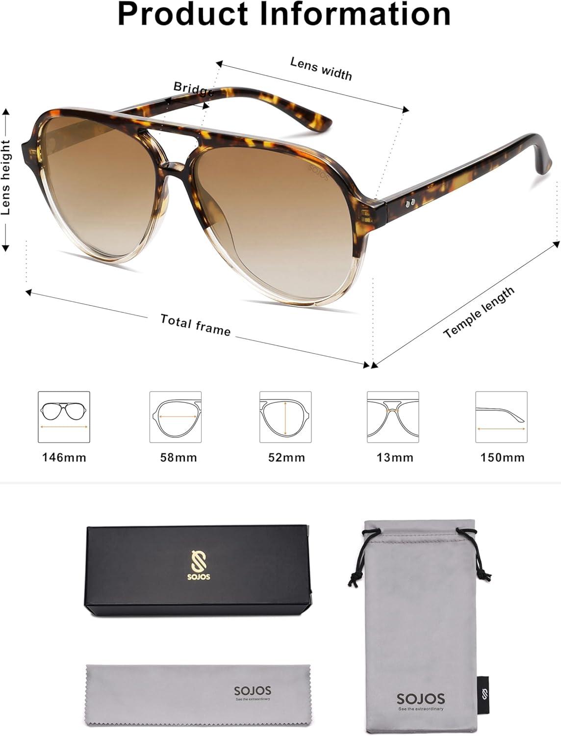 SOJOS Classic Polarized Aviator Sunglasses for Women Men, Retro Trendy Aviators Shades SJ2201(Tortoise Gradient Brown/Brown)