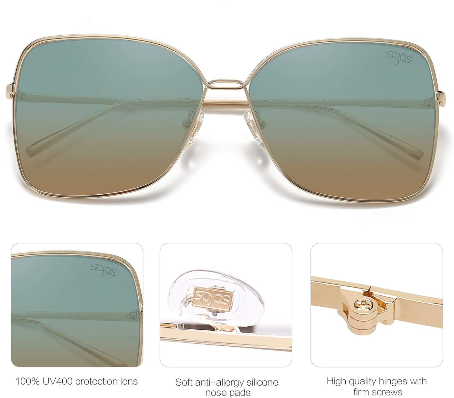 Get your hands on our newest SOJOS Classic Square Oversized Sunglasses for Women Big Large Designer Style Sunnies SJ1082(Gold/Brown&green) and enjoy a limited-time discount offer.