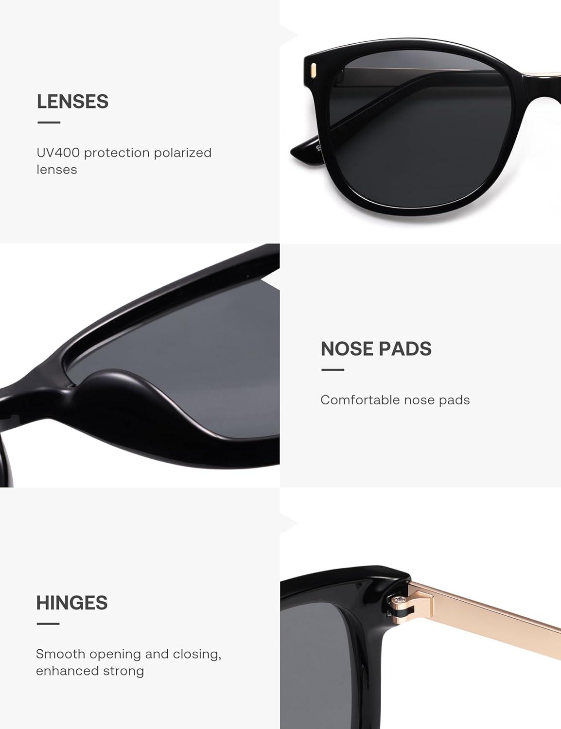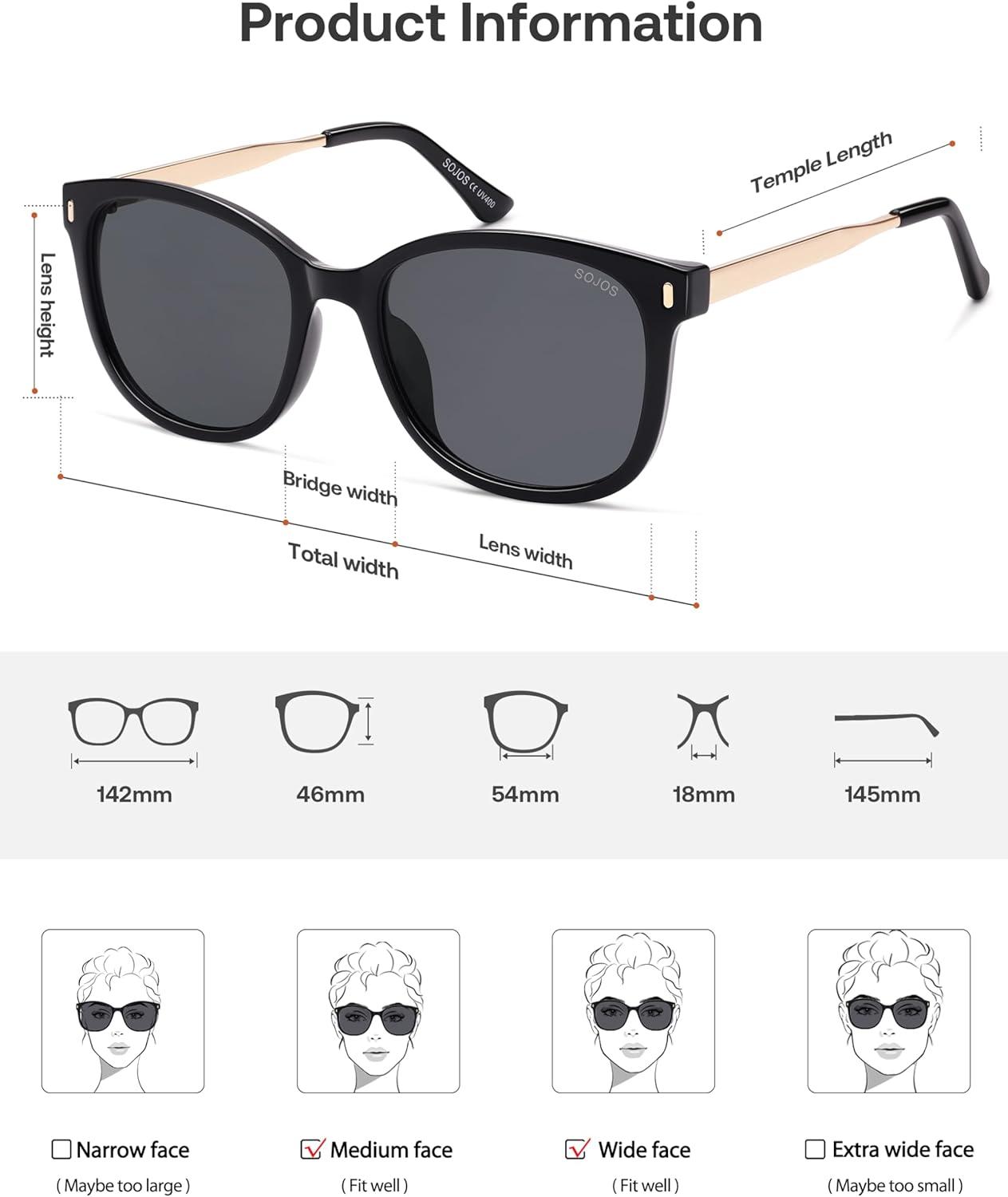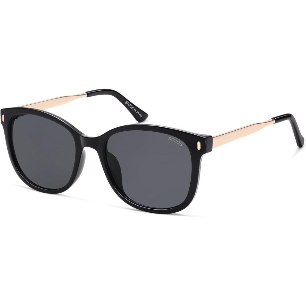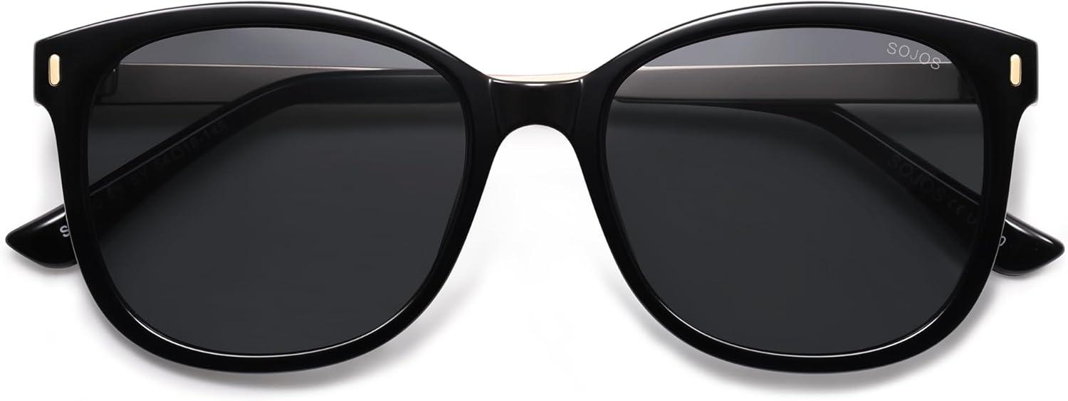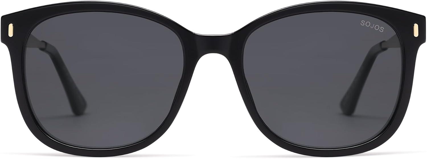 SOJOS Classic Square Polarized Sunglasses for Women Oversized Trendy Retro UV Protection Shade SJ2640(Black Frame Grey Lens)