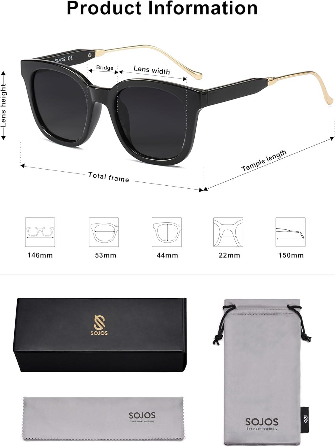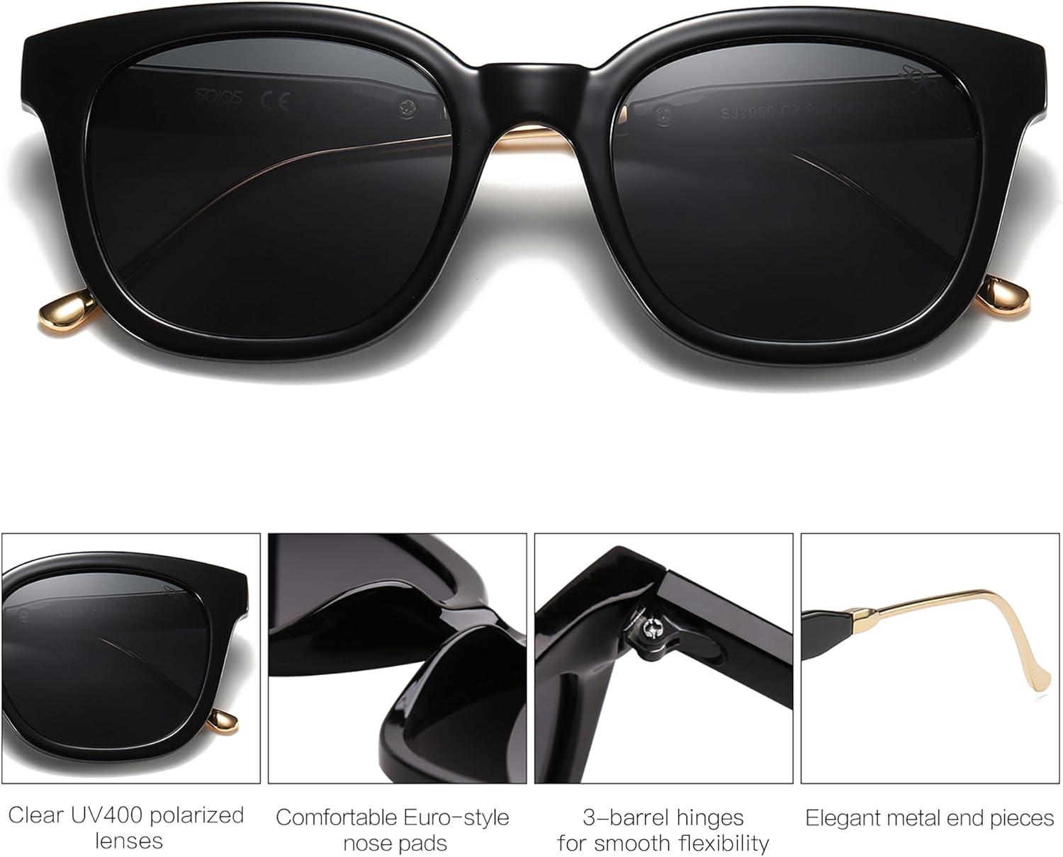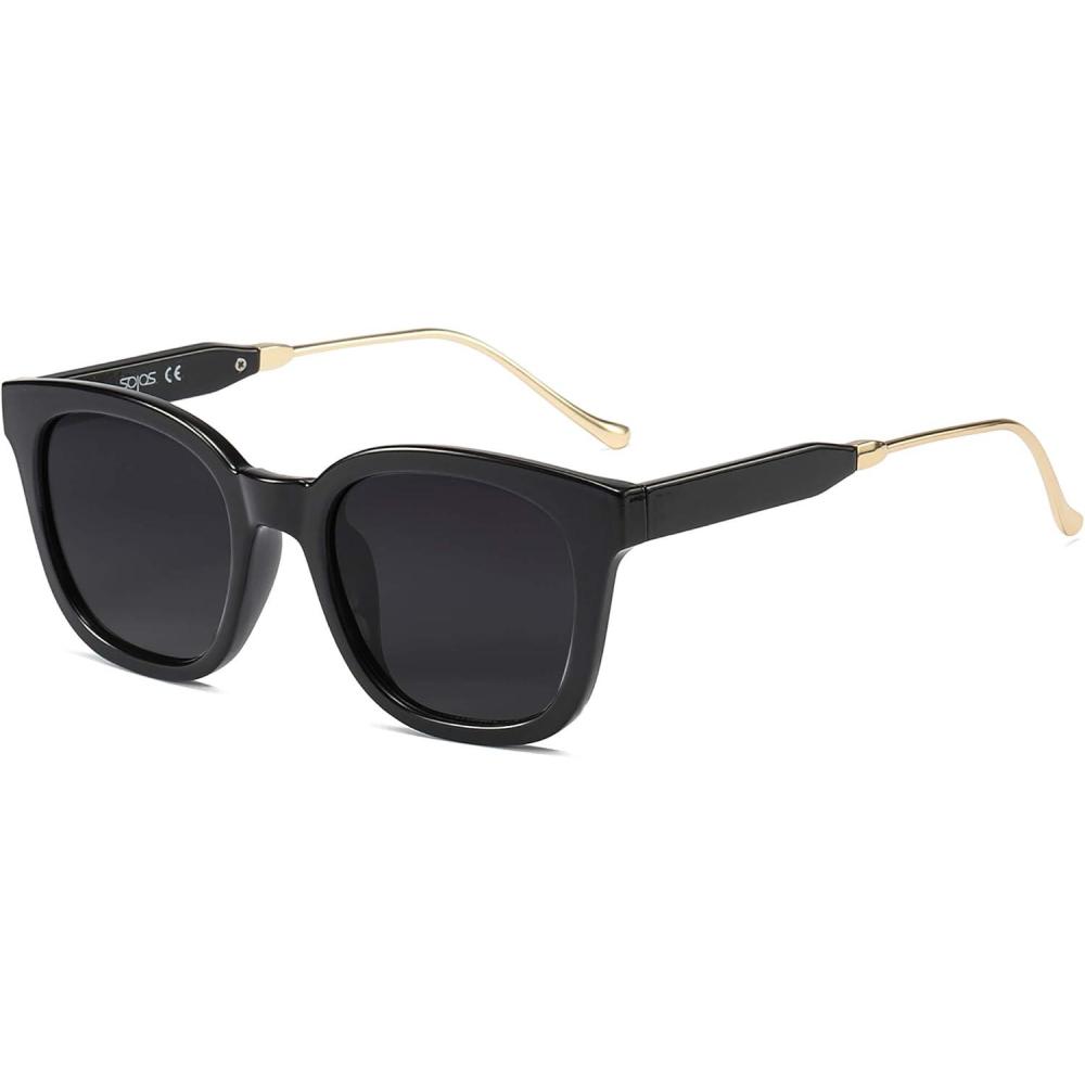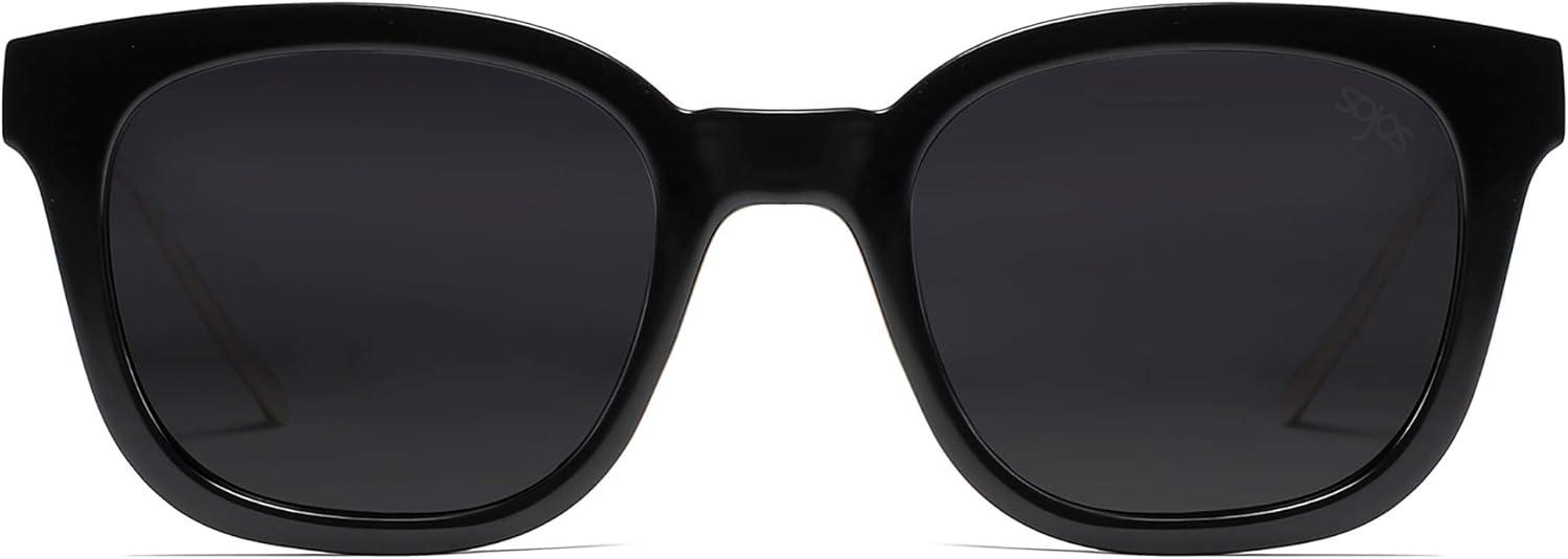 SOJOS Classic Square Polarized Sunglasses Womens Mens Retro Trendy UV400 Sunnies SJ2050(Black/Dark Grey)