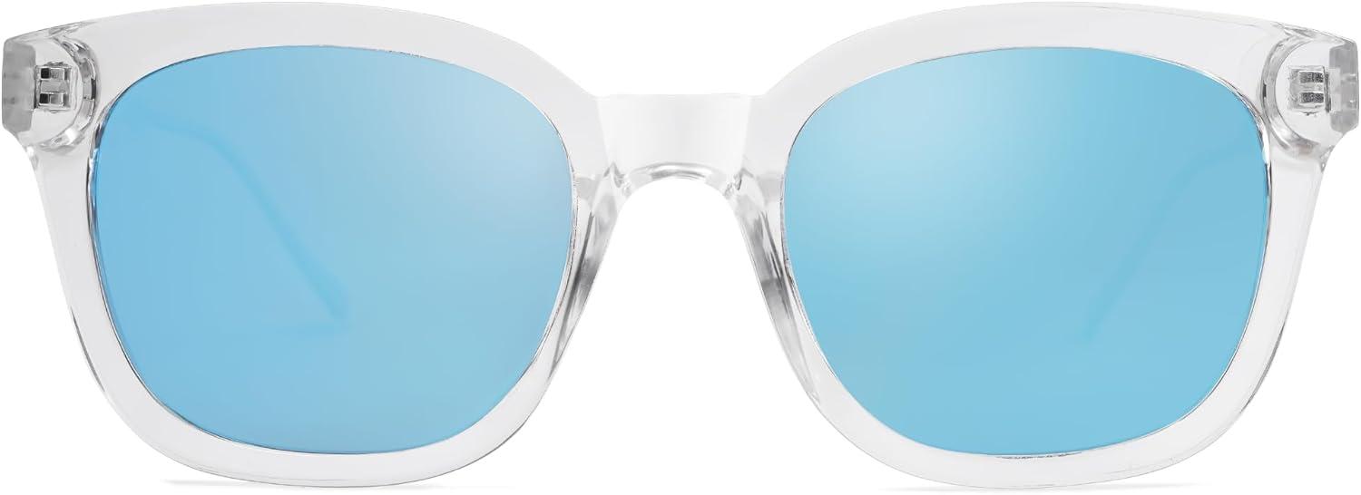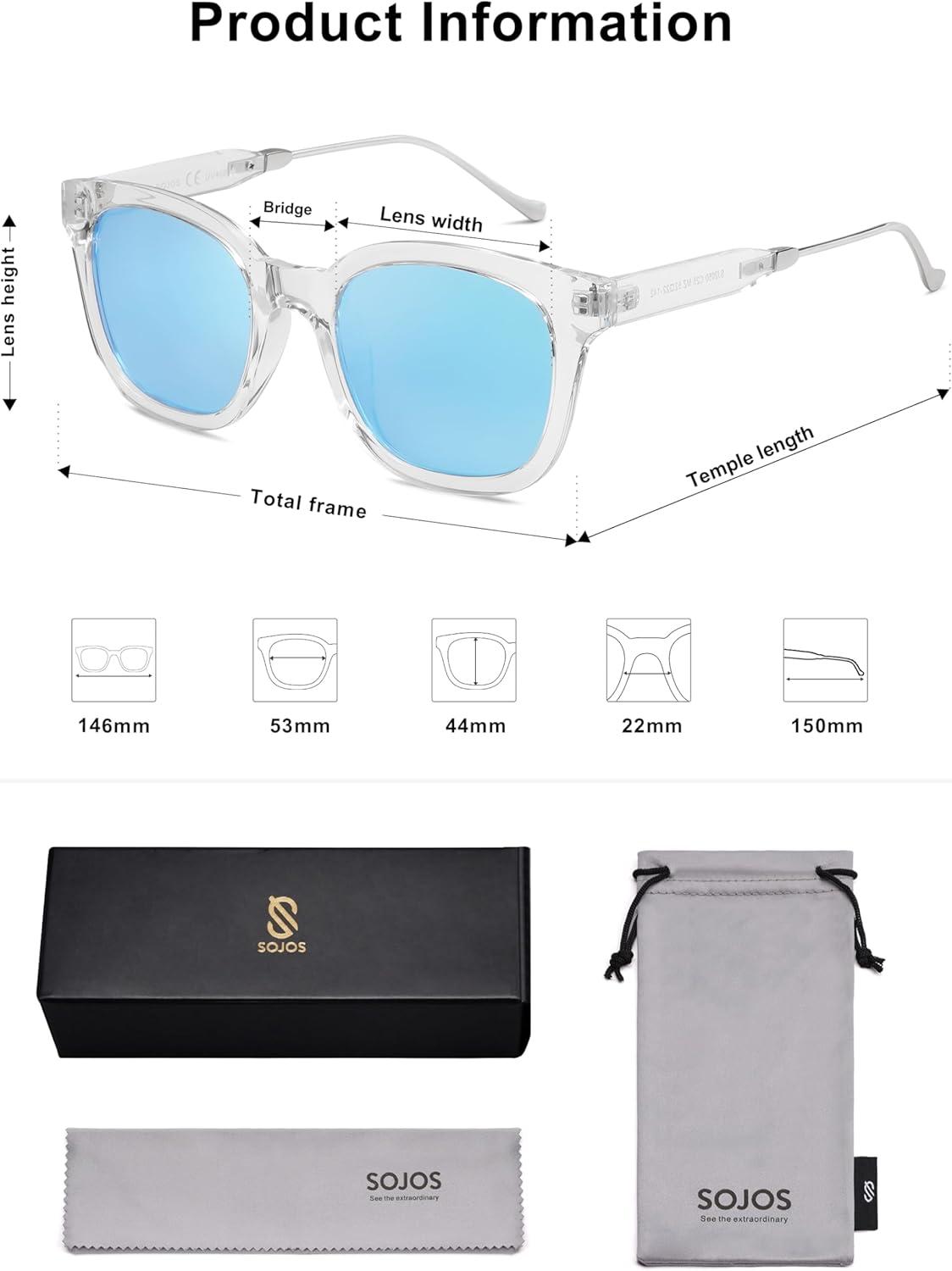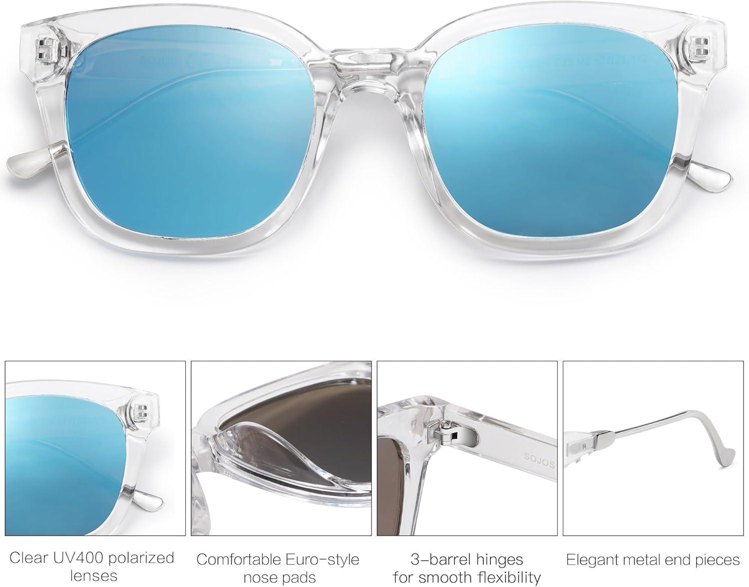 SOJOS Classic Square Polarized Sunglasses Womens Mens Retro Trendy UV400 Sunnies SJ2050(Clear/Blue Mirrored)