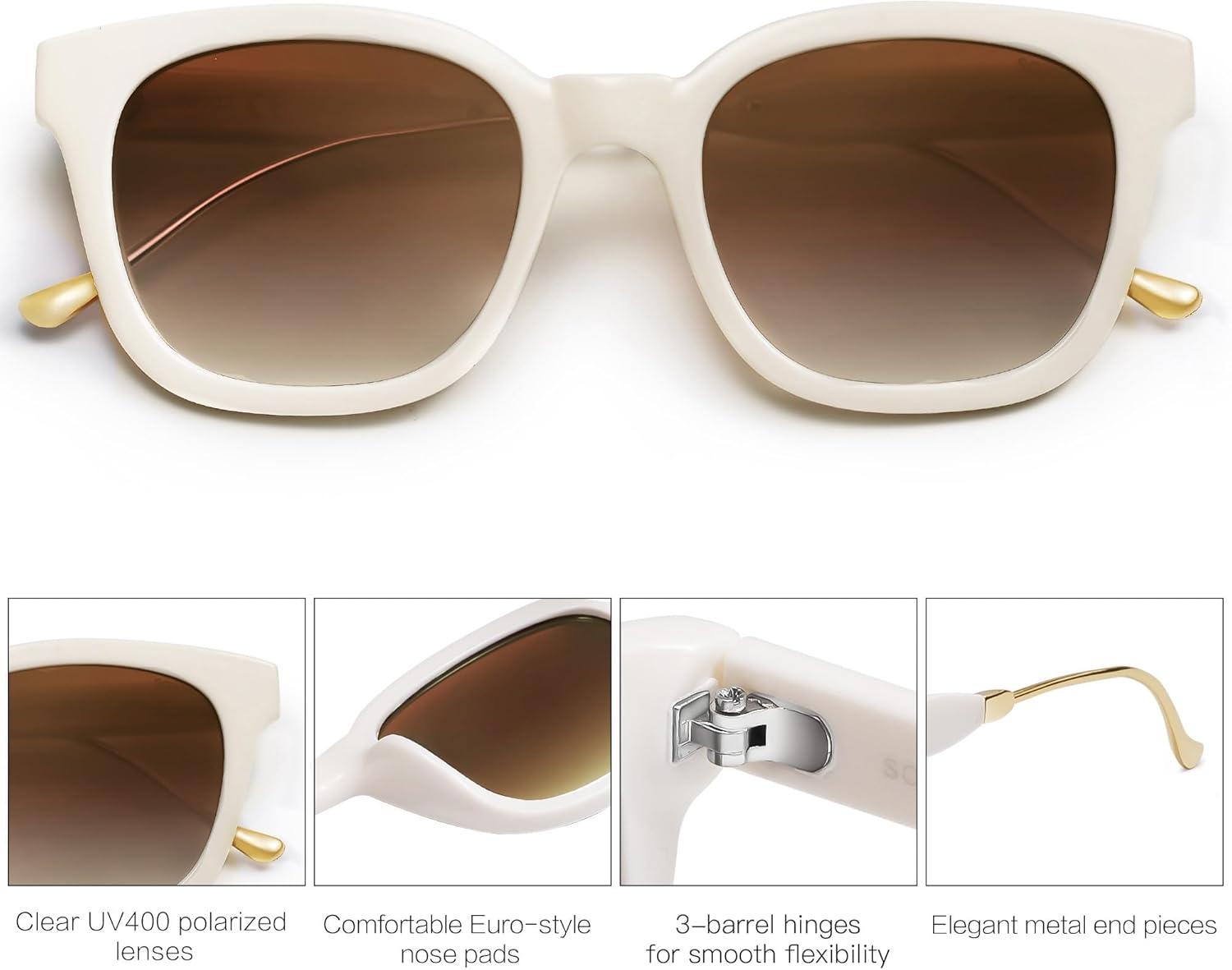 SOJOS Classic Square Polarized Sunglasses Womens Mens Retro Trendy UV400 Sunnies SJ2050(Cream/Gradient Brown)