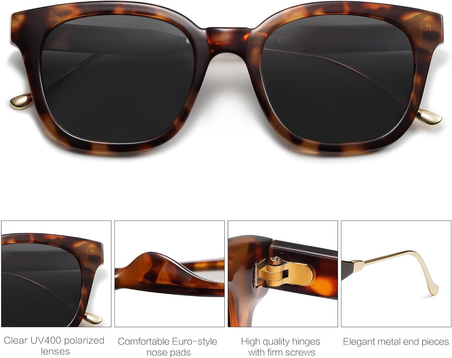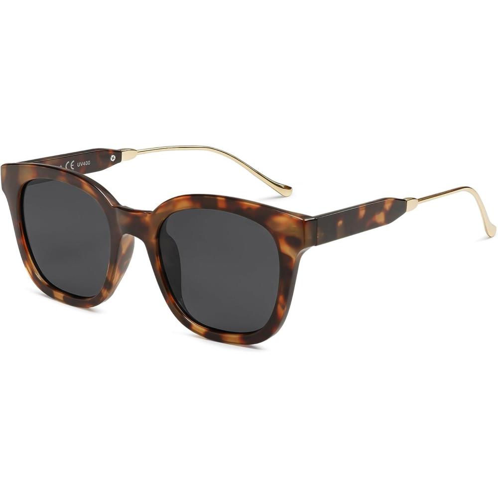 SOJOS Classic Square Polarized Sunglasses Womens Mens Retro Trendy UV400 Sunnies SJ2050(Dark Brown Tortoise/Grey)