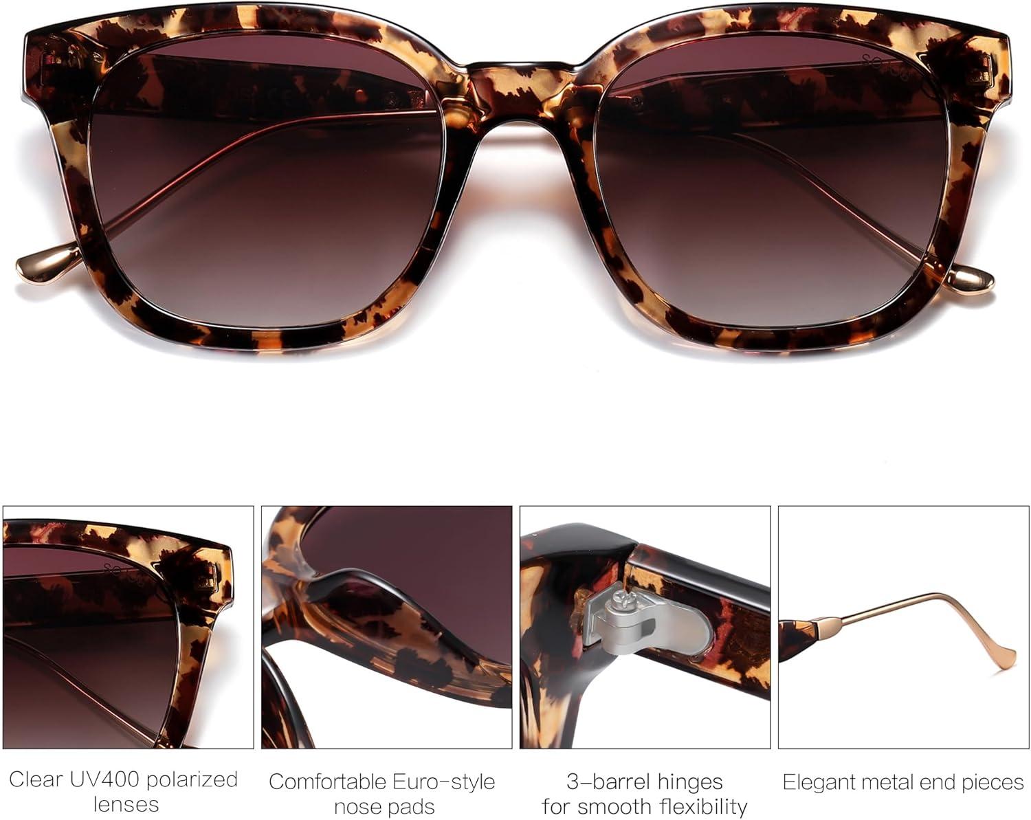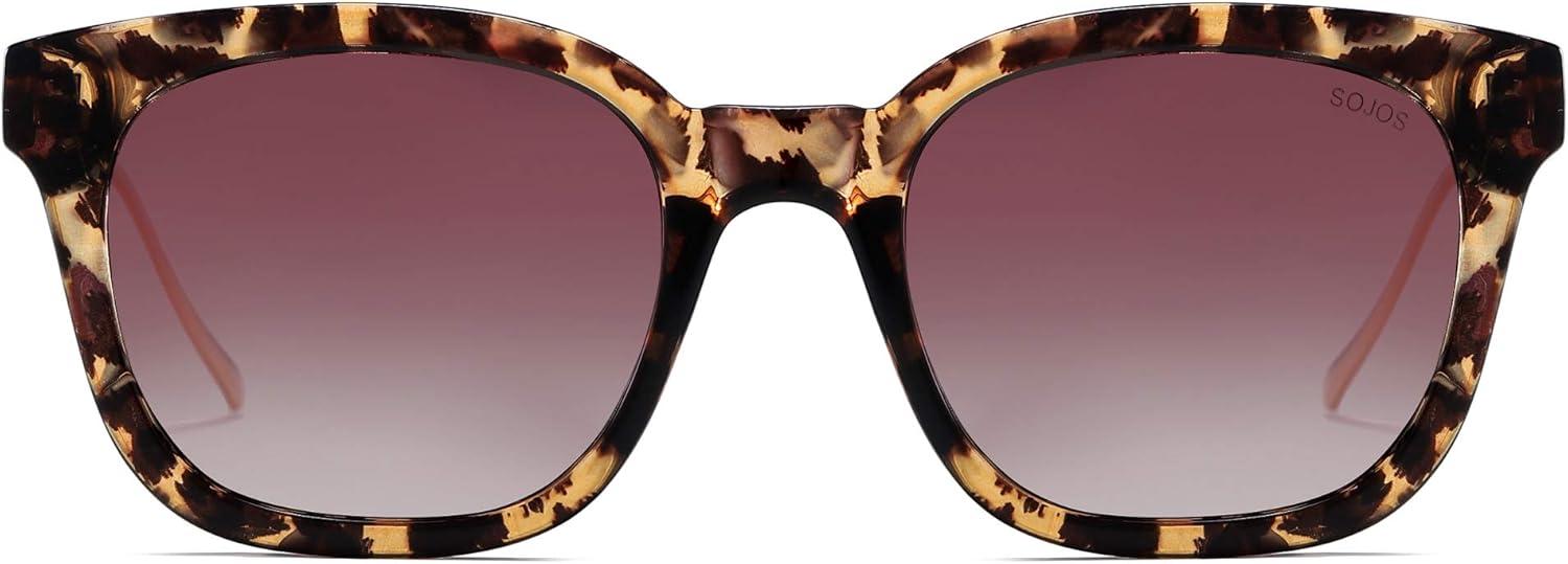 SOJOS Classic Square Polarized Sunglasses Womens Mens Retro Trendy UV400 Sunnies SJ2050(Leopard/Purple)