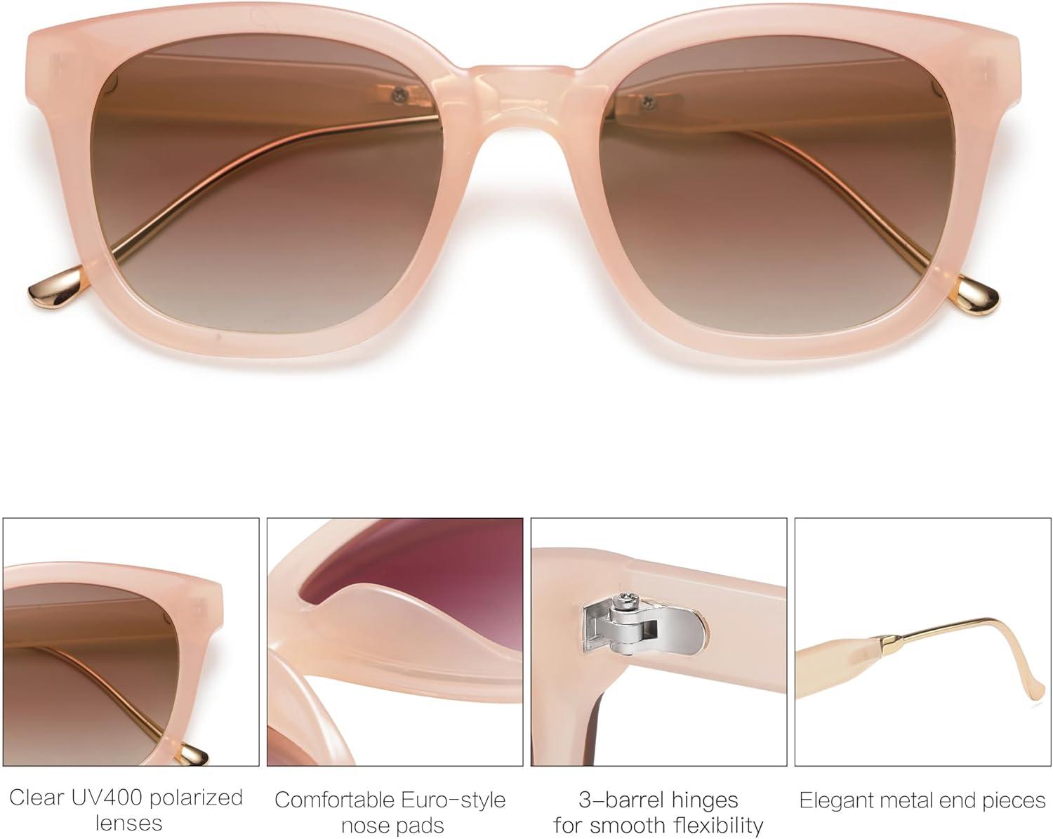 SOJOS Classic Square Polarized Sunglasses Womens Mens Retro Trendy UV400 Sunnies SJ2050(Pink/Bown)