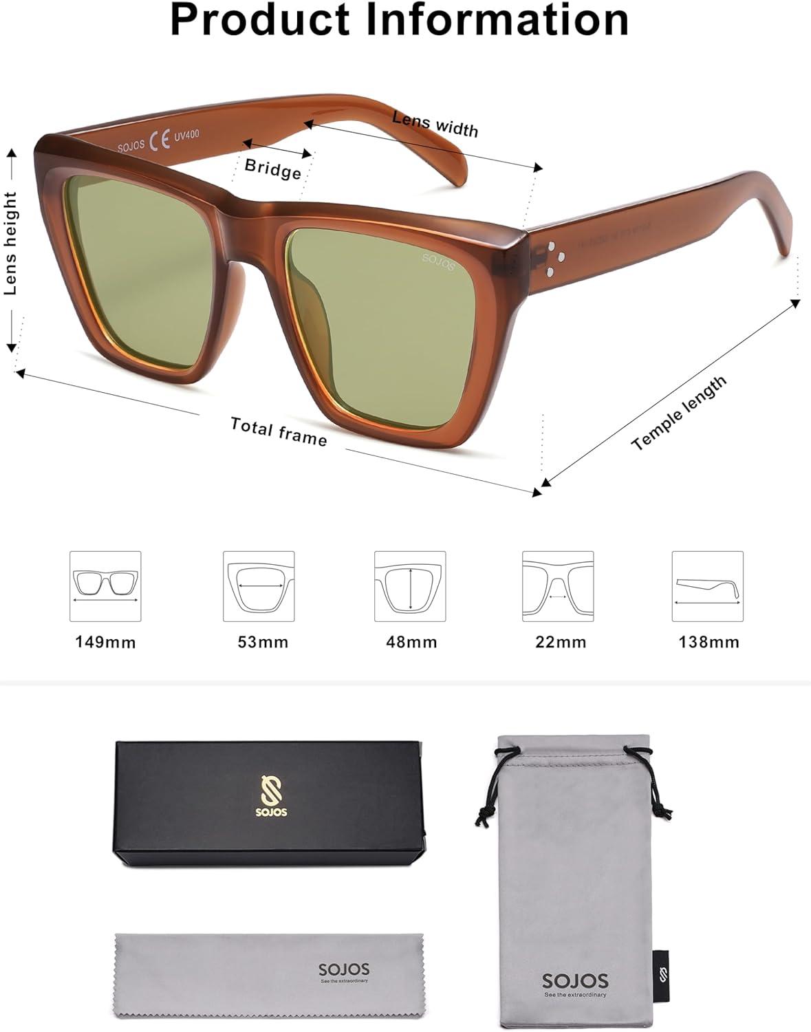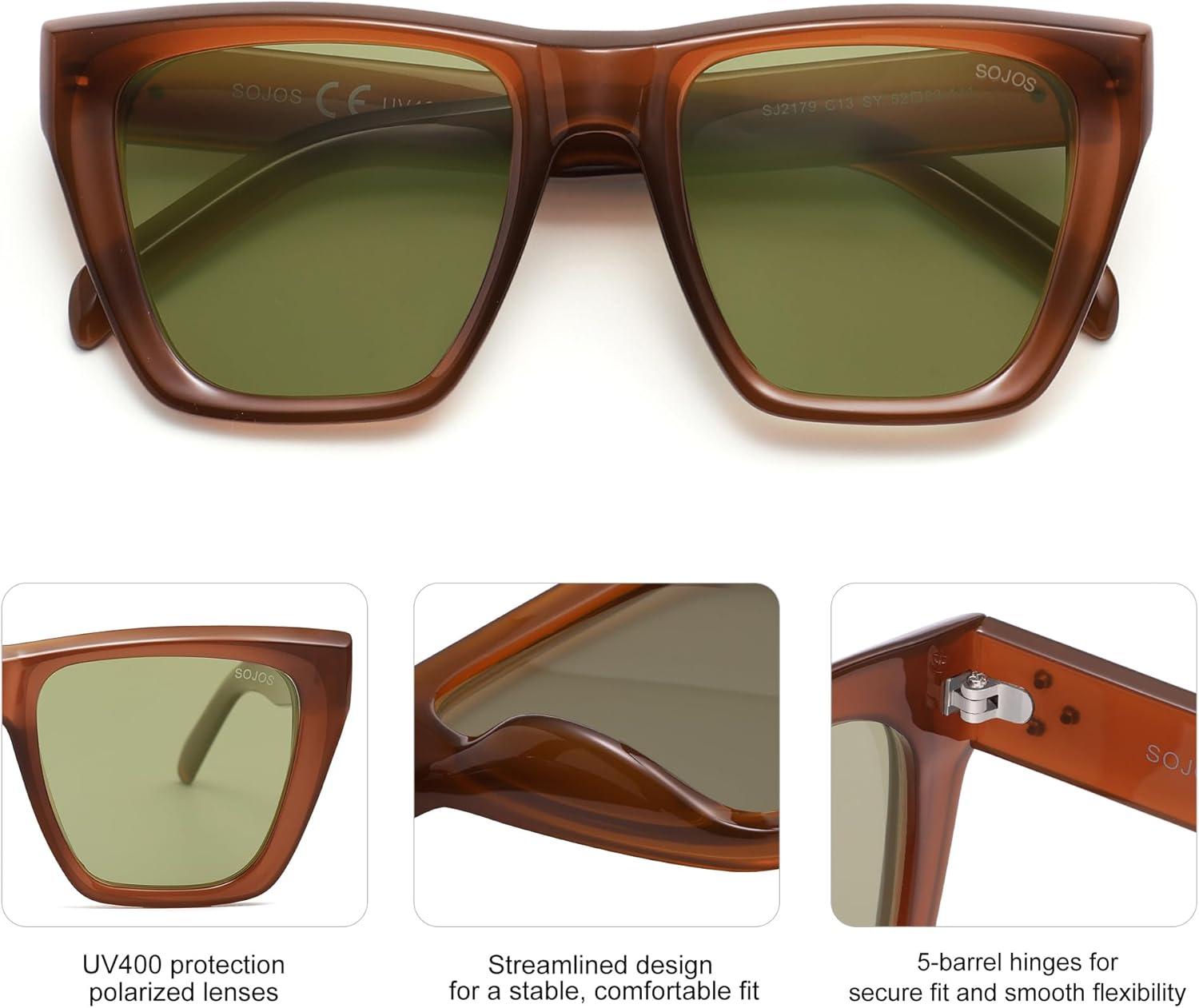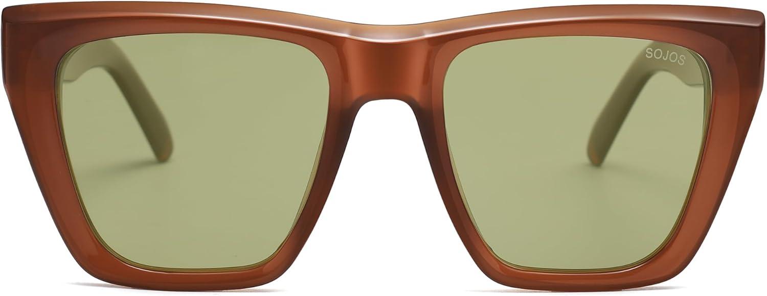 SOJOS Fashion Oversized Square Cat Eye Polarized Sunglasses for Women Trendy Cateye Style Womens Sunglasses SJ2179(Mocha Brown/Light Green)