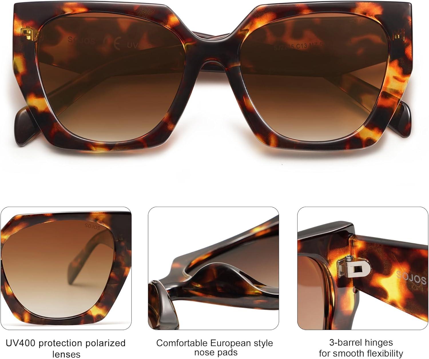 imageSOJOS Large Oversized Polarized Sunglasses for Women Big Designer Womens Trendy Square Shades SJ2205Black Gradient TortoiseBrown
