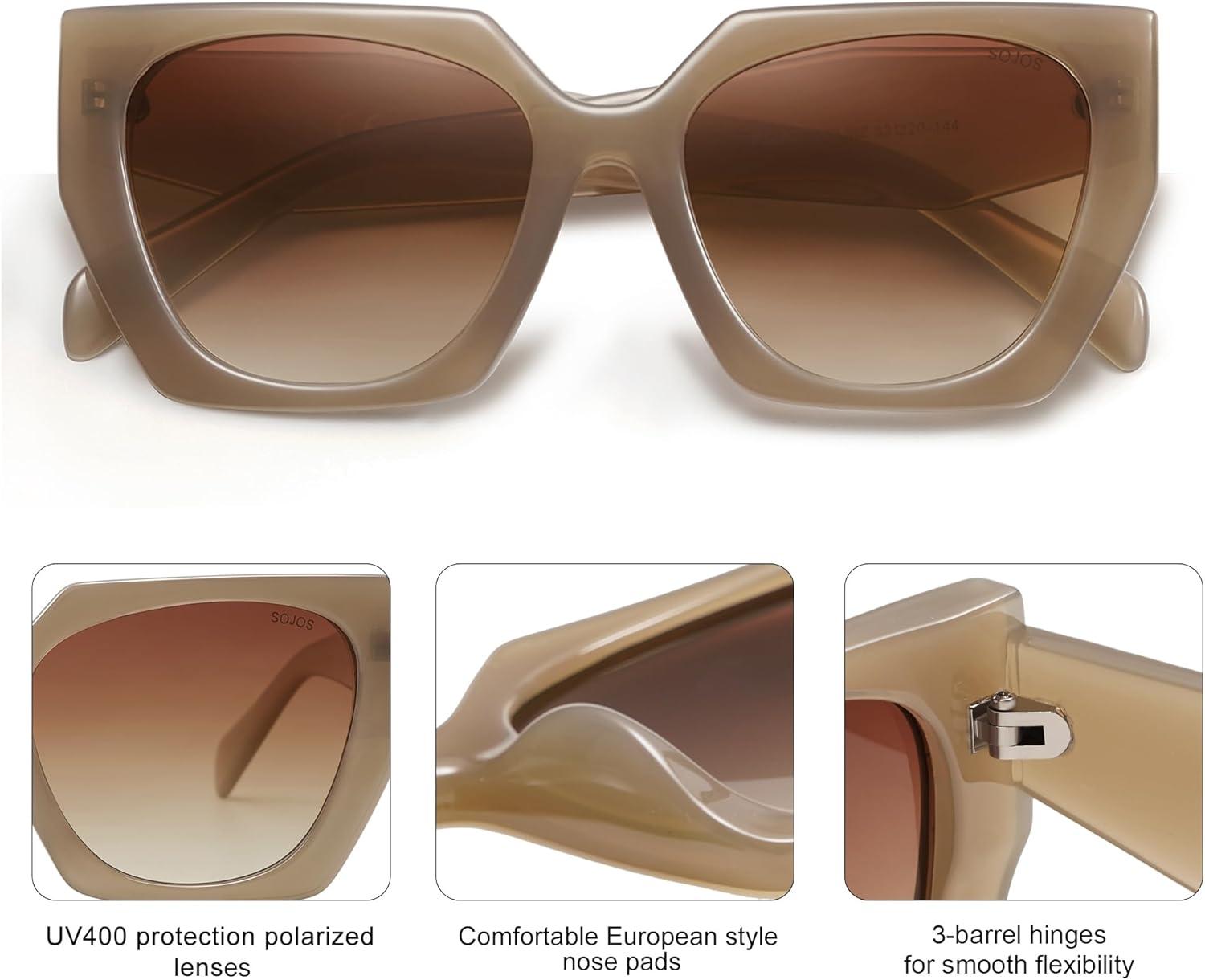 SOJOS Large Oversized Polarized Sunglasses for Women, Big Designer Womens Trendy Square Shades SJ2205(Milky Brown/Brown)