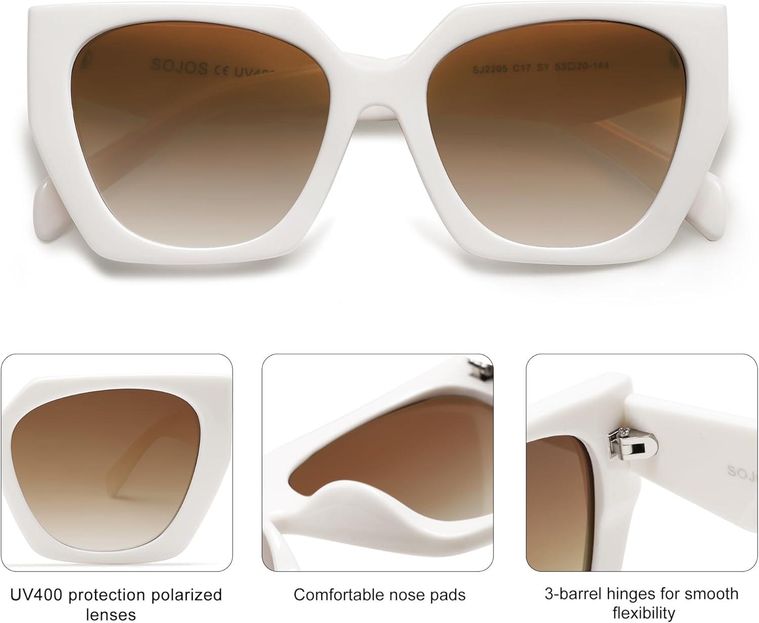 SOJOS Large Oversized Polarized Sunglasses for Women, Big Designer Womens Trendy Square Shades SJ2205(White/Light Brown)