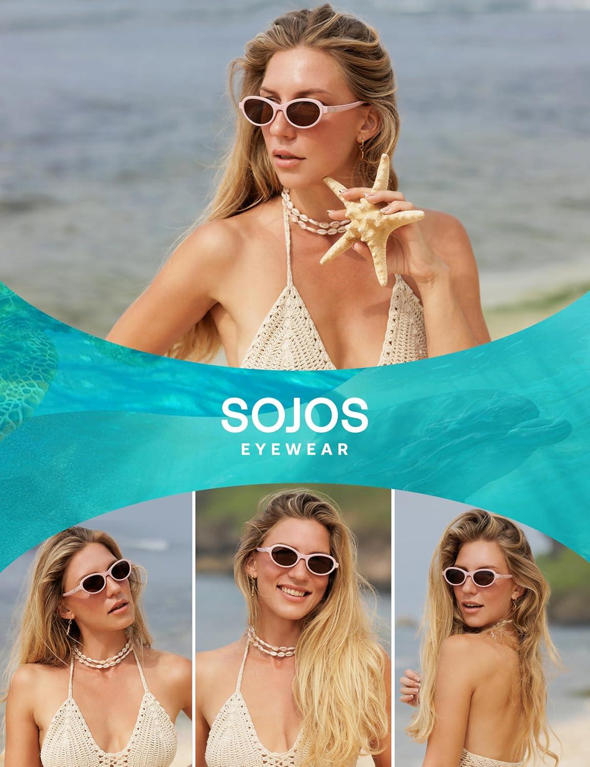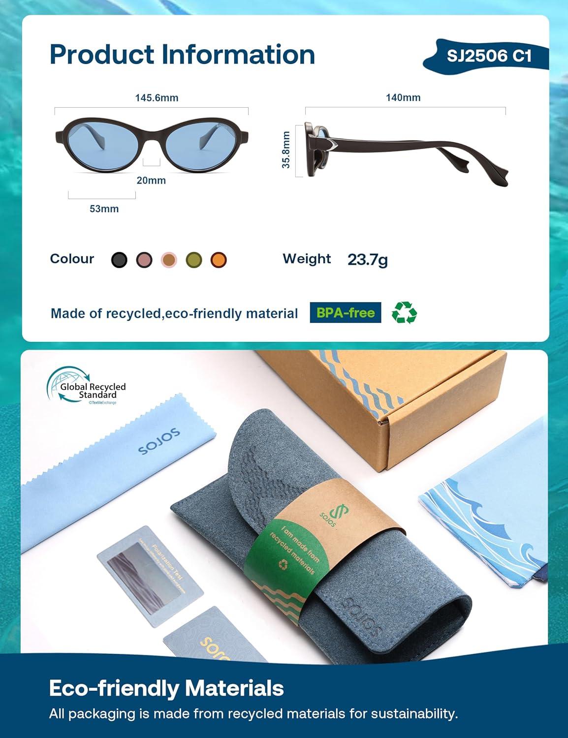 imageSOJOS Ocean Collection Polarized Retro Oval Small Sunglasses Womens Recycled Plastic Frame EcoFriendly UV400 EchoBrownBlue