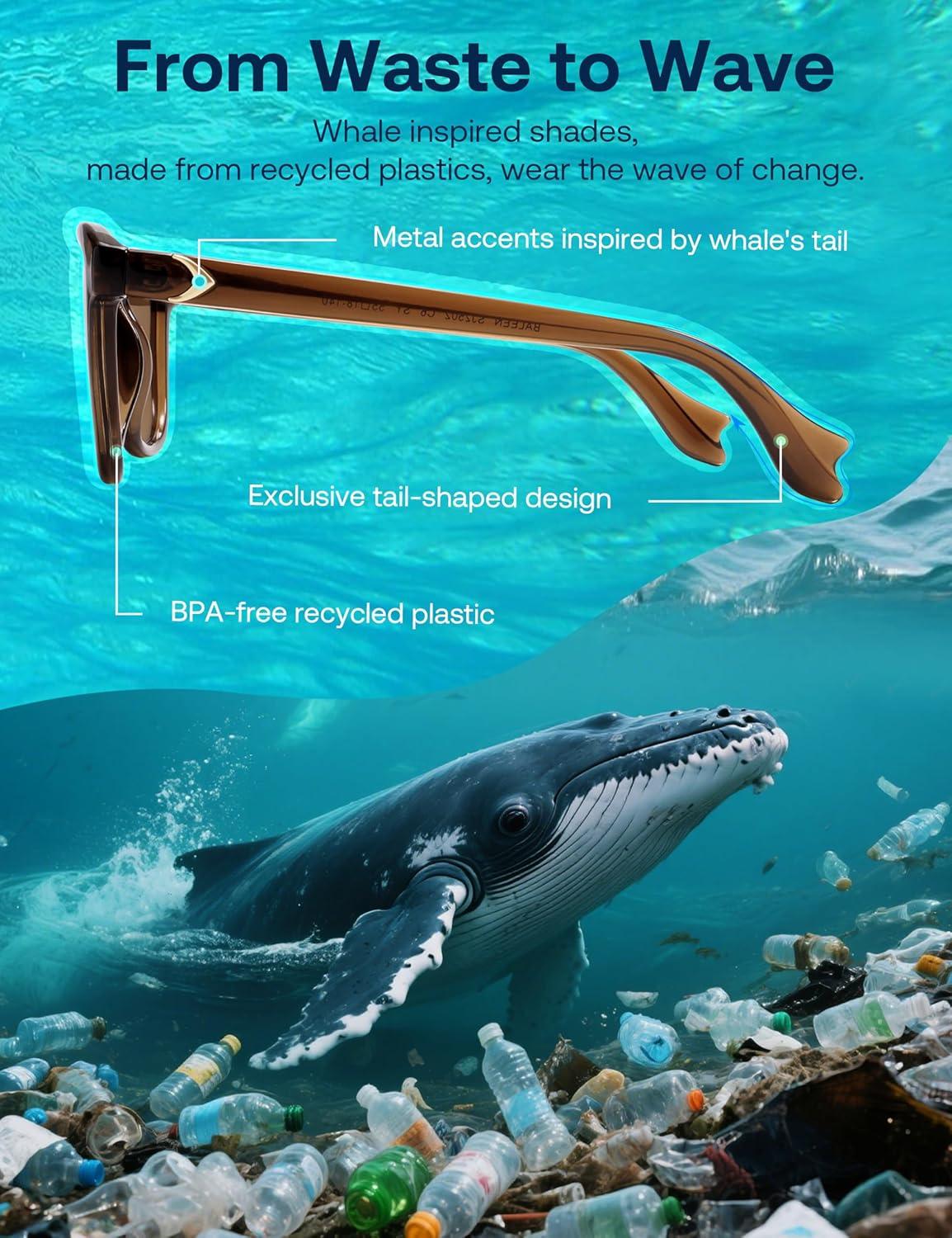 imageSOJOS Ocean Collection Retro Polarized Large Rectangular Sunglasses Women Men Recycled Plastic Ecofriendly Shades BaleenBlackGrey