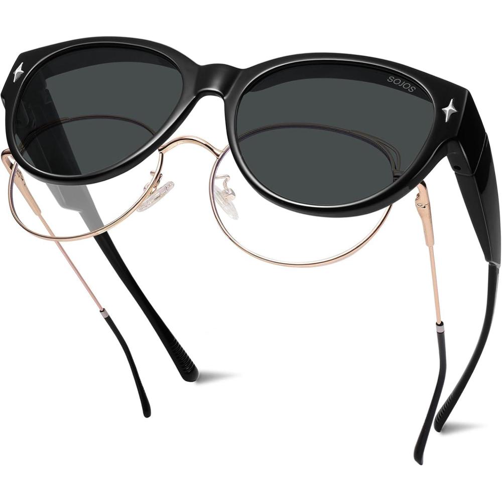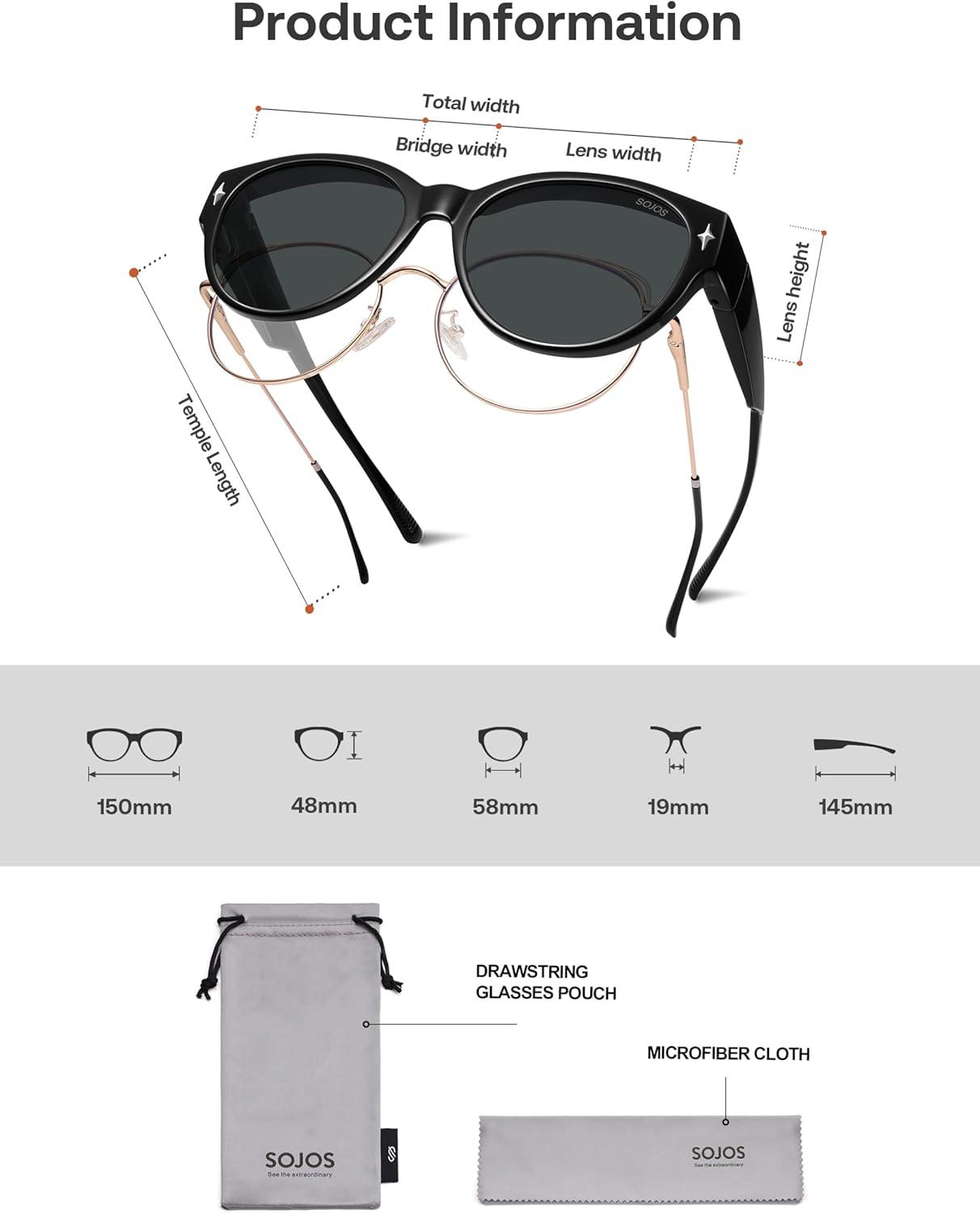 SOJOS Polarized Fit Over Glasses Sunglasses for Women Men SJ2658(Black/Grey)