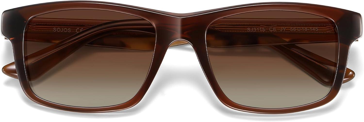 SOJOS Rectangle Polarized Sunglasses for Men Women Classic Acetate Frame UV Protective Wide Vision Shades SJ3115(Brown/Brown)