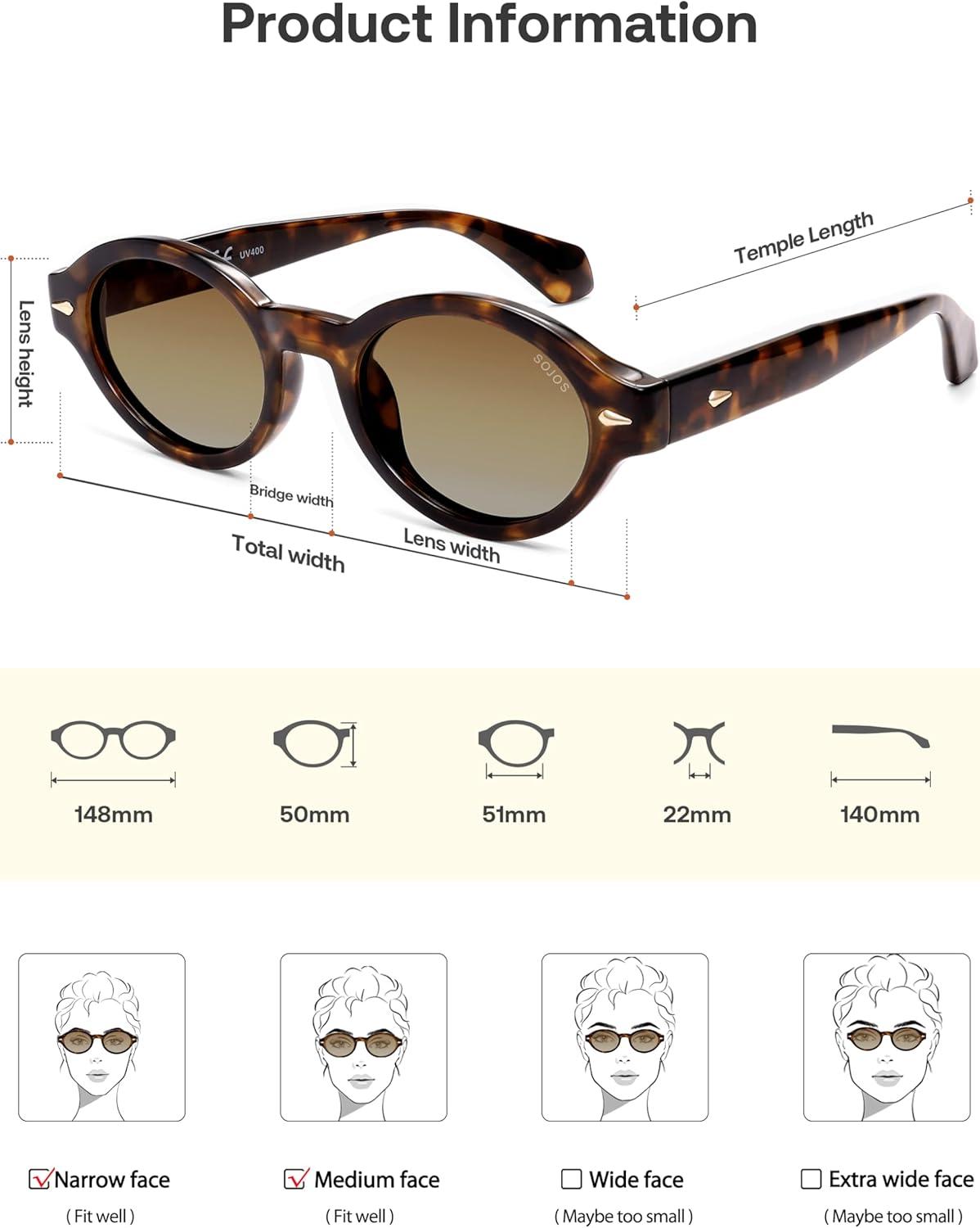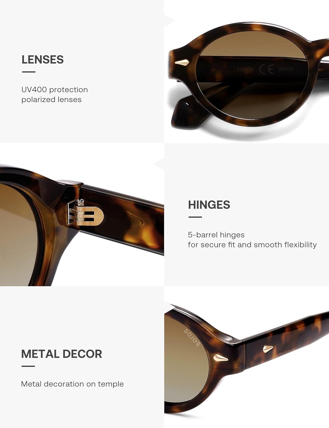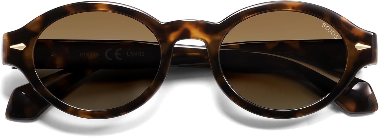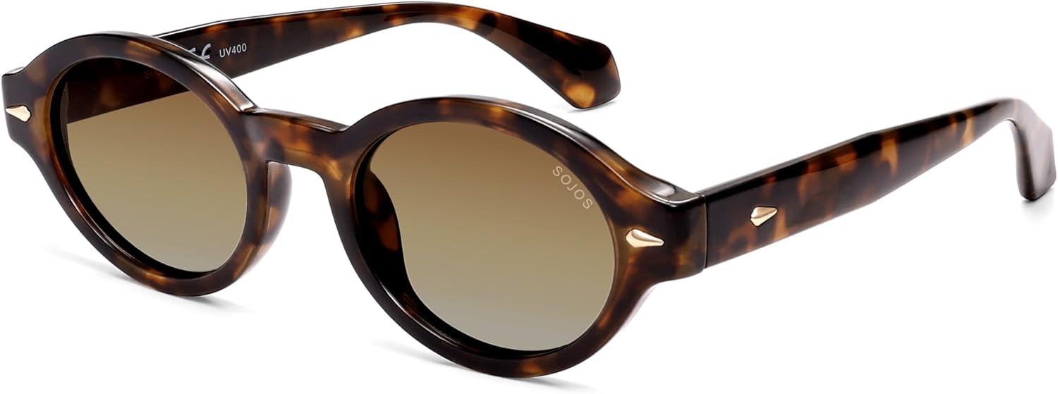 SOJOS Retro Oval Polarized Sunglasses for Women Men Chic Trendy 90s Sunnies Shades UV protection Sun Glasses(Tortoise Frame Brown Grading Lens)