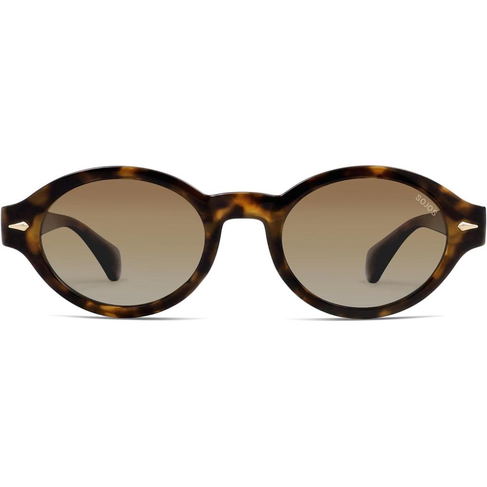 imageSOJOS Retro Oval Polarized Sunglasses for Women Men Chic Trendy 90s Sunnies Shades UV protection Sun GlassesTortoise Frame Brown Grading Lens