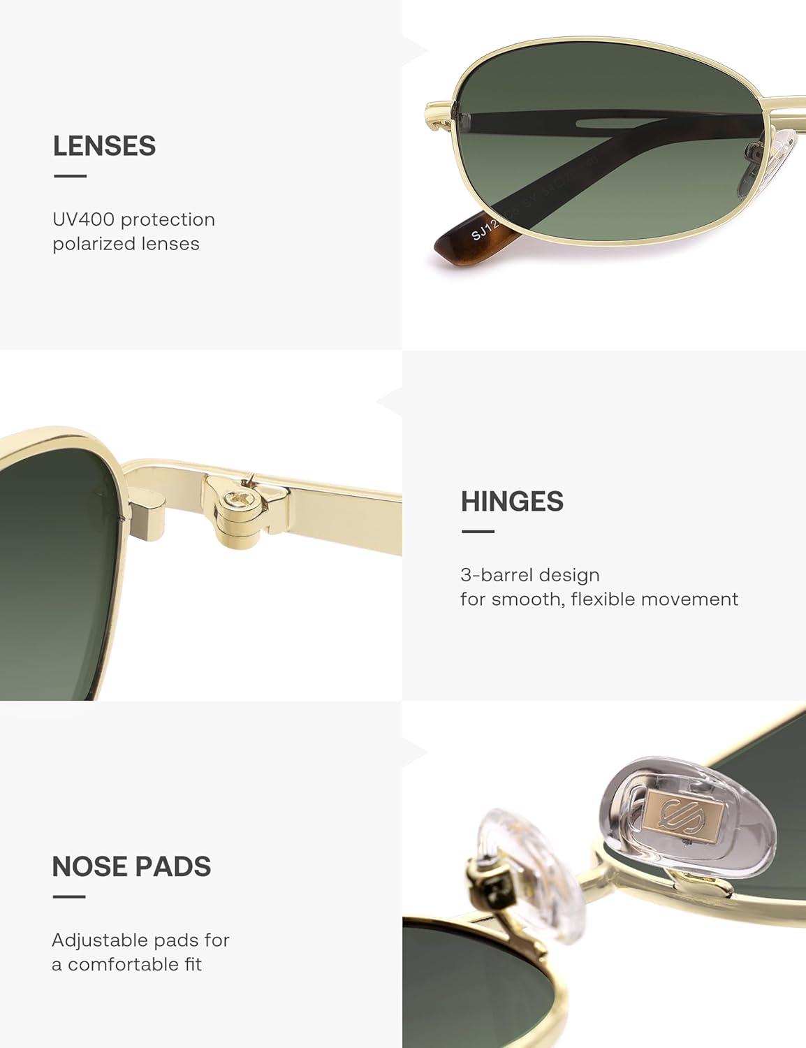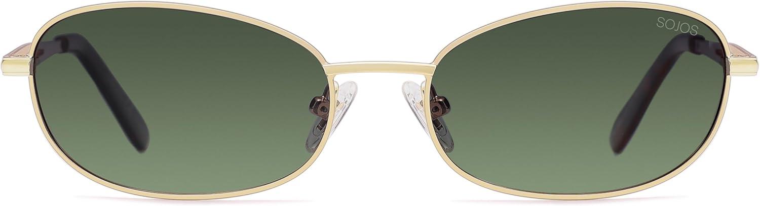 imageSOJOS Retro Oval Sunglasses for Women Men Polarized Trendy Narrow Shades UV400 Womens Mens Sun Glasses SJ1263GoldGreyishgreen