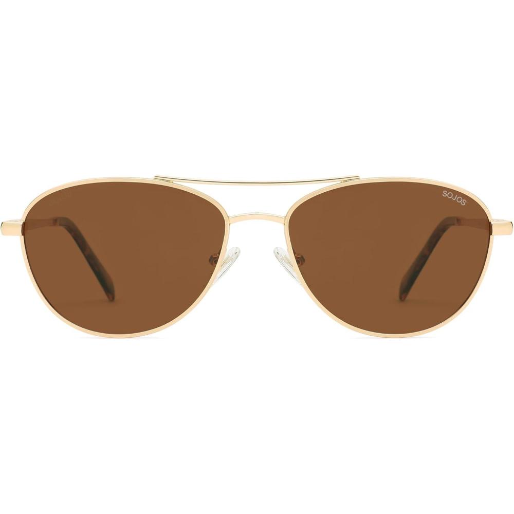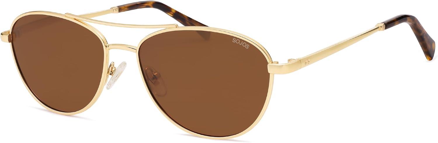 SOJOS Retro Polarized Aviator Sunglasses for Women Men Vintage 70s Style UV Protection Womens Mens Sun Glasses SJ1265(Gold/Brown)