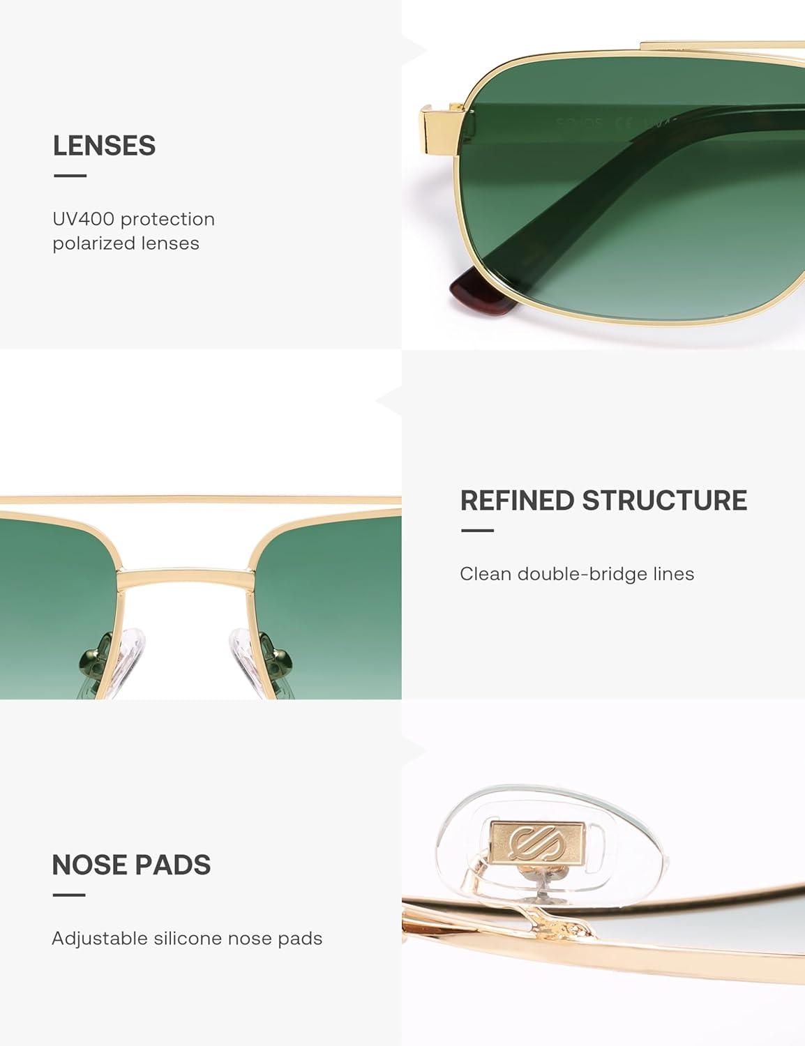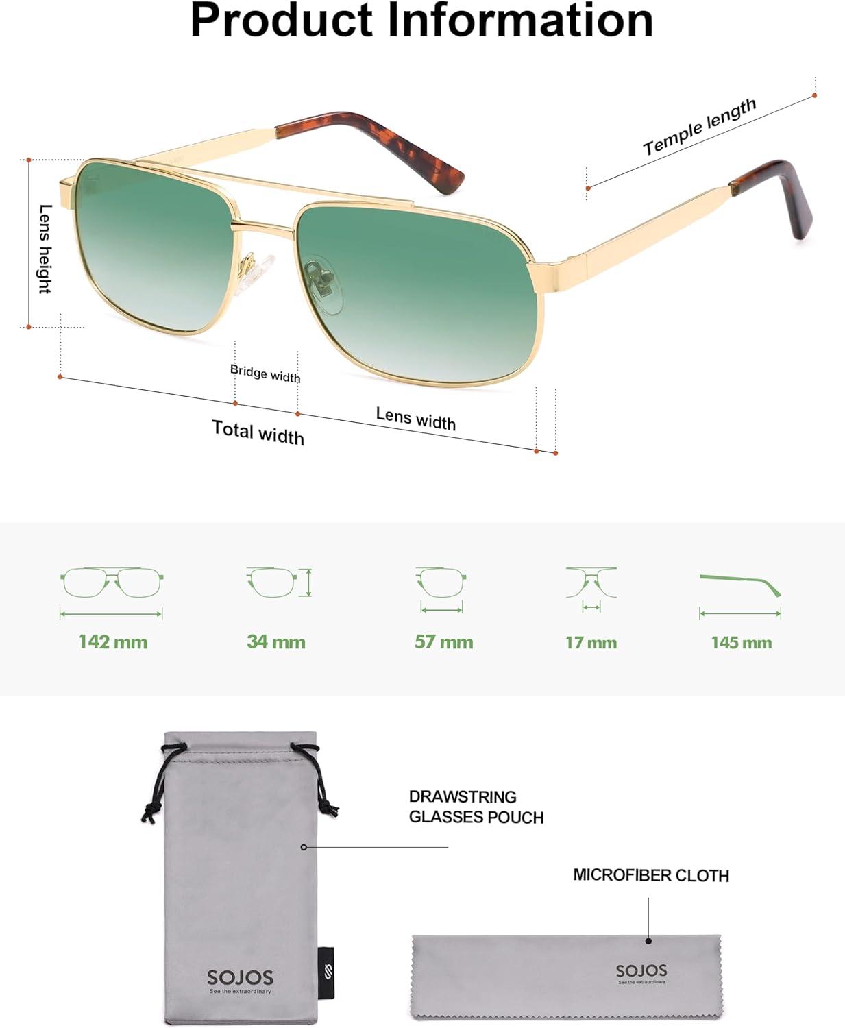 imageSOJOS Retro Polarized Aviator Sunglasses for Women Men Vintage Rectangle 70s Style Womens Mens Sun Glasses SJ1250GoldGreen Grading