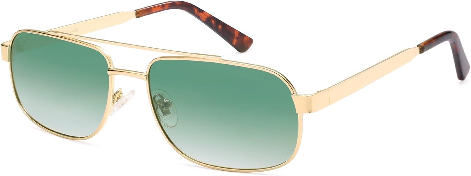 SOJOS Retro Polarized Aviator Sunglasses for Women Men, Vintage Rectangle 70s Style Womens Mens Sun Glasses SJ1250(Gold/Green Grading)