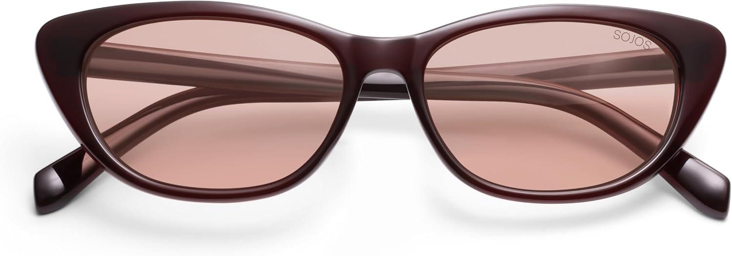 Get your hands on our newest SOJOS Retro Polarized Cat Eye Sunglasses for Women Narrow Vintage Shades Trendy Sunnies SJ2396(Maroon /Light Orange) and enjoy a limited-time discount offer.