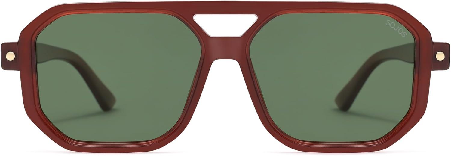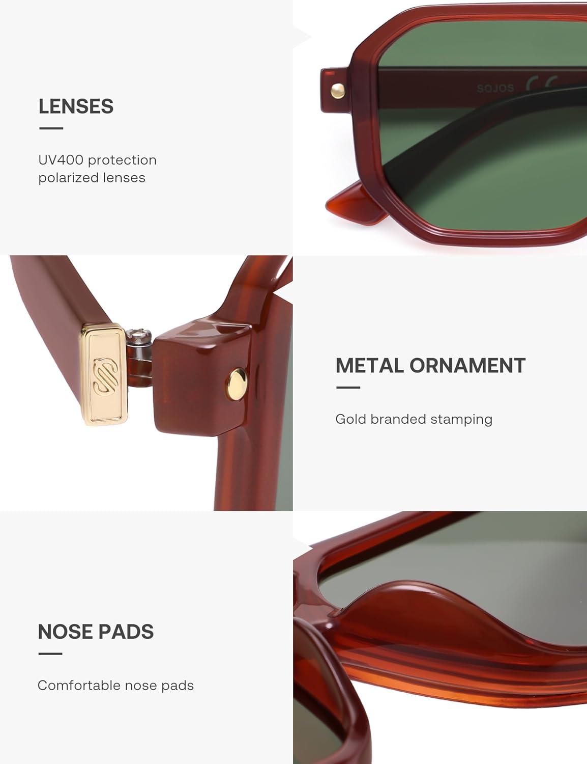 imageSOJOS Retro Polarized Square Aviator Sunglasses for Women Men Vintage 70s UV400 Protection Shade SJ2609Dark Green Red Lens