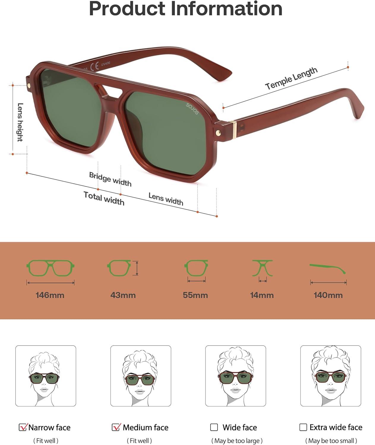 Be the first to review “SOJOS Retro Polarized Square Aviator Sunglasses for Women Men Vintage 70s UV400 Protection Shade SJ2609(Milky Brown Green Lens)”