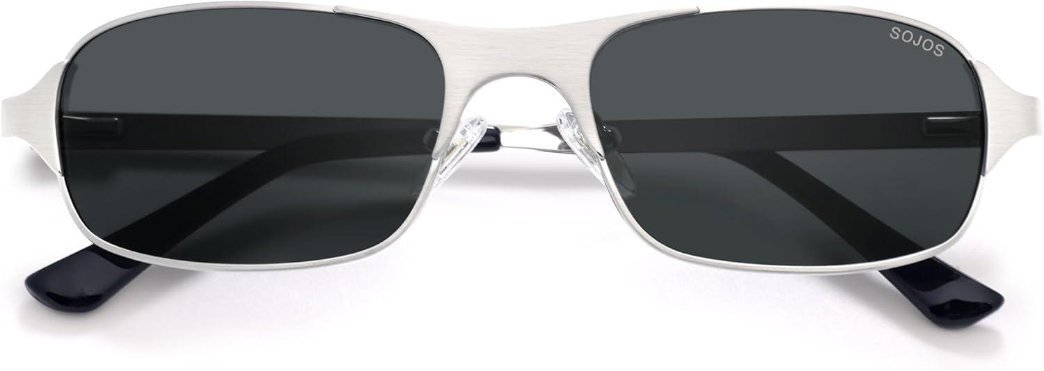 SOJOS Retro Rectangle Polarized Sunglasses for Men Women, 70s 80s Vintage Small Square Sunnies SJ1267(Brushed Silver/Grey)