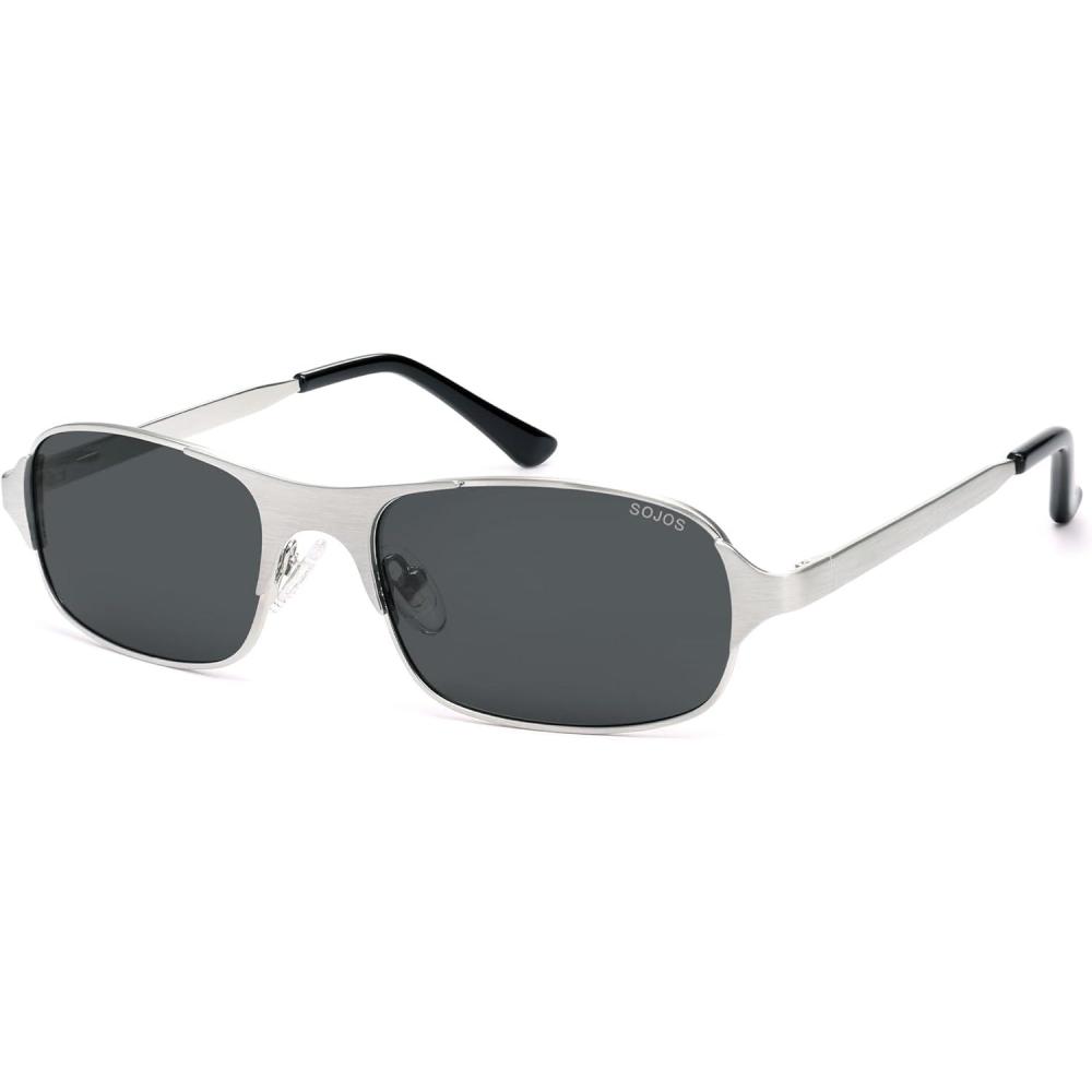imageSOJOS Retro Rectangle Polarized Sunglasses for Men Women 70s 80s Vintage Small Square Sunnies SJ1267Brushed SilverGrey