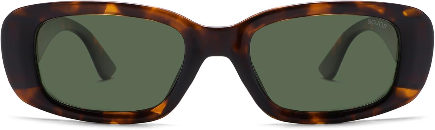 SOJOS Retro Rectangle Polarized Sunglasses Women Men Trendy Y2k 90s UV Protection Womens Mens Sun Glasses SJ2375(Brown Tortoise/Dark Green)