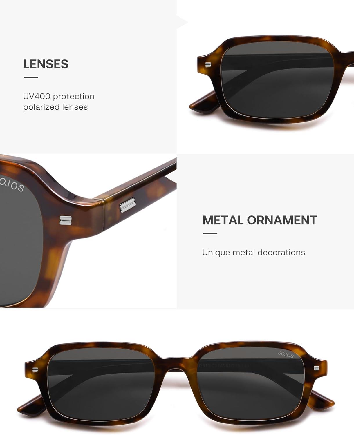 imageSOJOS Retro Rectangular Polarized Sunglasses Womens Mens 80s 90s Small Trendy Slim Narrow Square Sunnies SJ2610Brown TortoiseBrown