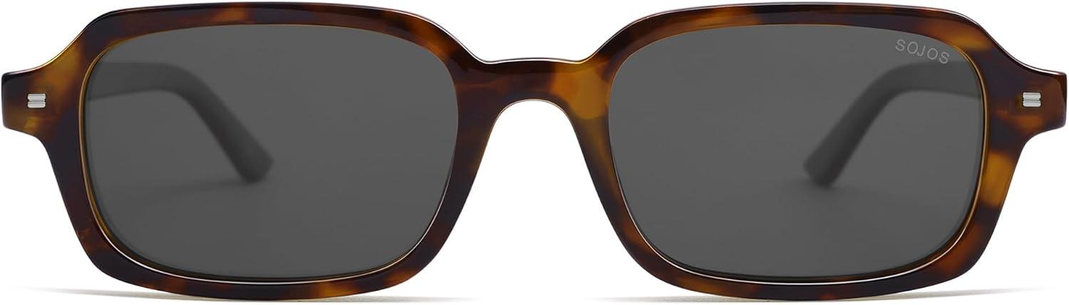 SOJOS Retro Rectangular Polarized Sunglasses Womens Mens, 80s 90s Small Trendy Slim Narrow Square Sunnies SJ2610(Brown Tortoise/Grey)