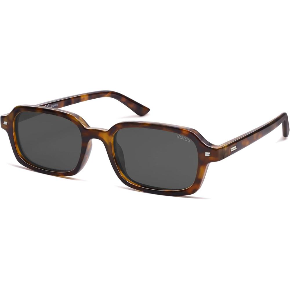 imageSOJOS Retro Rectangular Polarized Sunglasses Womens Mens 80s 90s Small Trendy Slim Narrow Square Sunnies SJ2610Brown TortoiseGrey