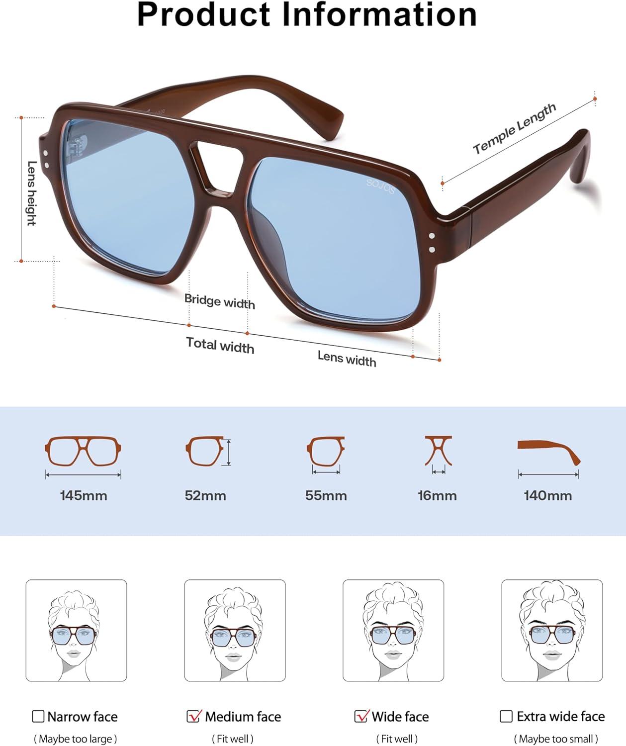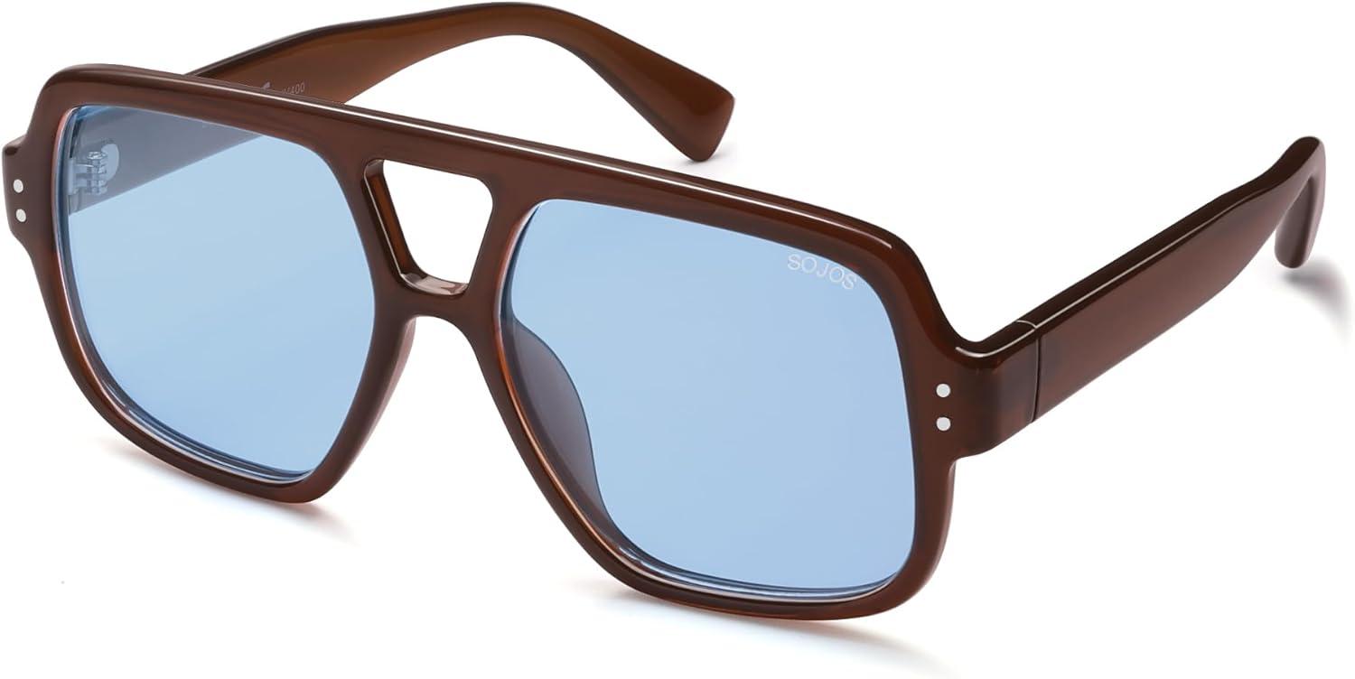 SOJOS Retro Square Polarized Aviator Sunglasses Womens Mens Trendy Vintage Aviators Shades SJ2613(Dark Brown/Light Blue Tint)