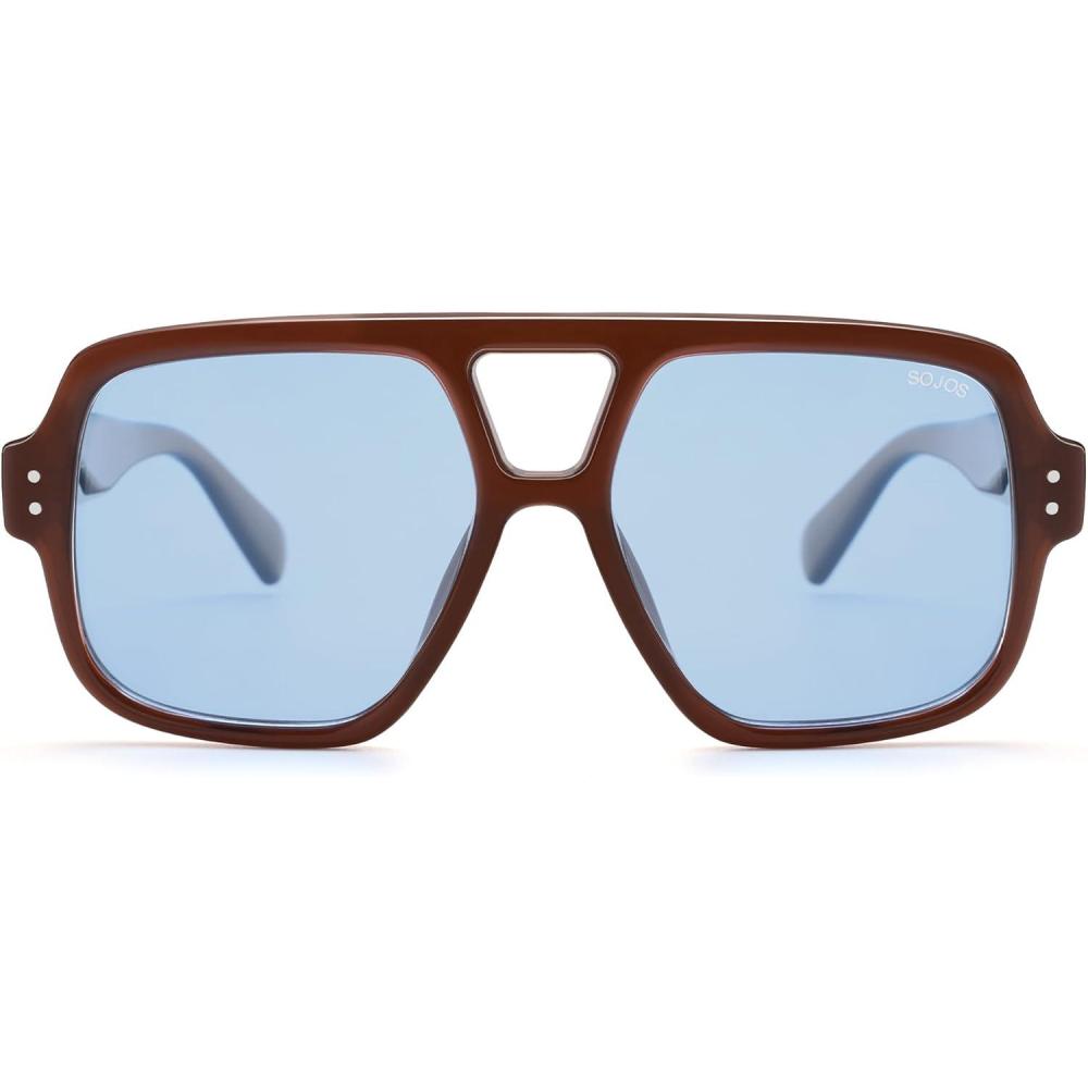 imageSOJOS Retro Square Polarized Aviator Sunglasses Womens Mens Trendy Vintage Aviators Shades SJ2613Dark BrownLight Blue Tint