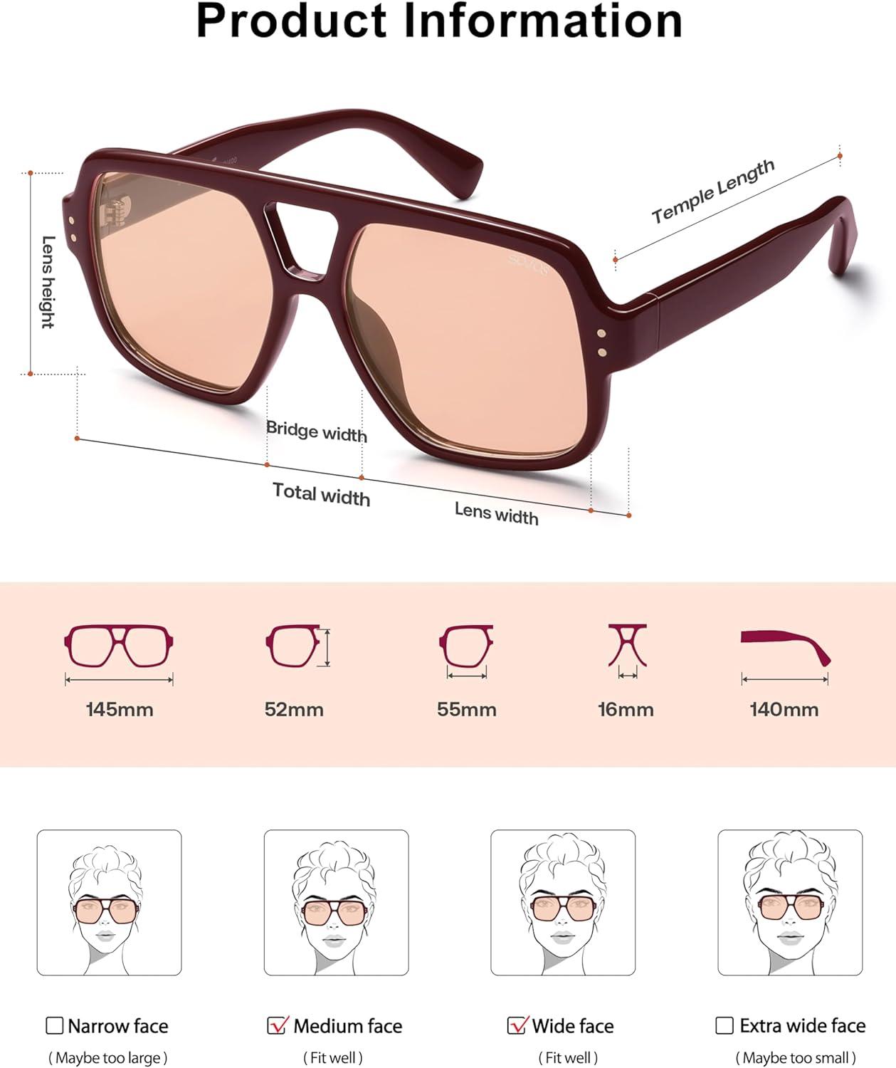Be the first to review “SOJOS Retro Square Polarized Aviator Sunglasses Womens Mens Trendy Vintage Aviators Shades SJ2613(Dark Red/Light Blush Tint)”