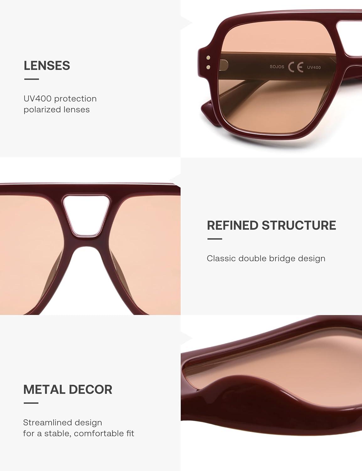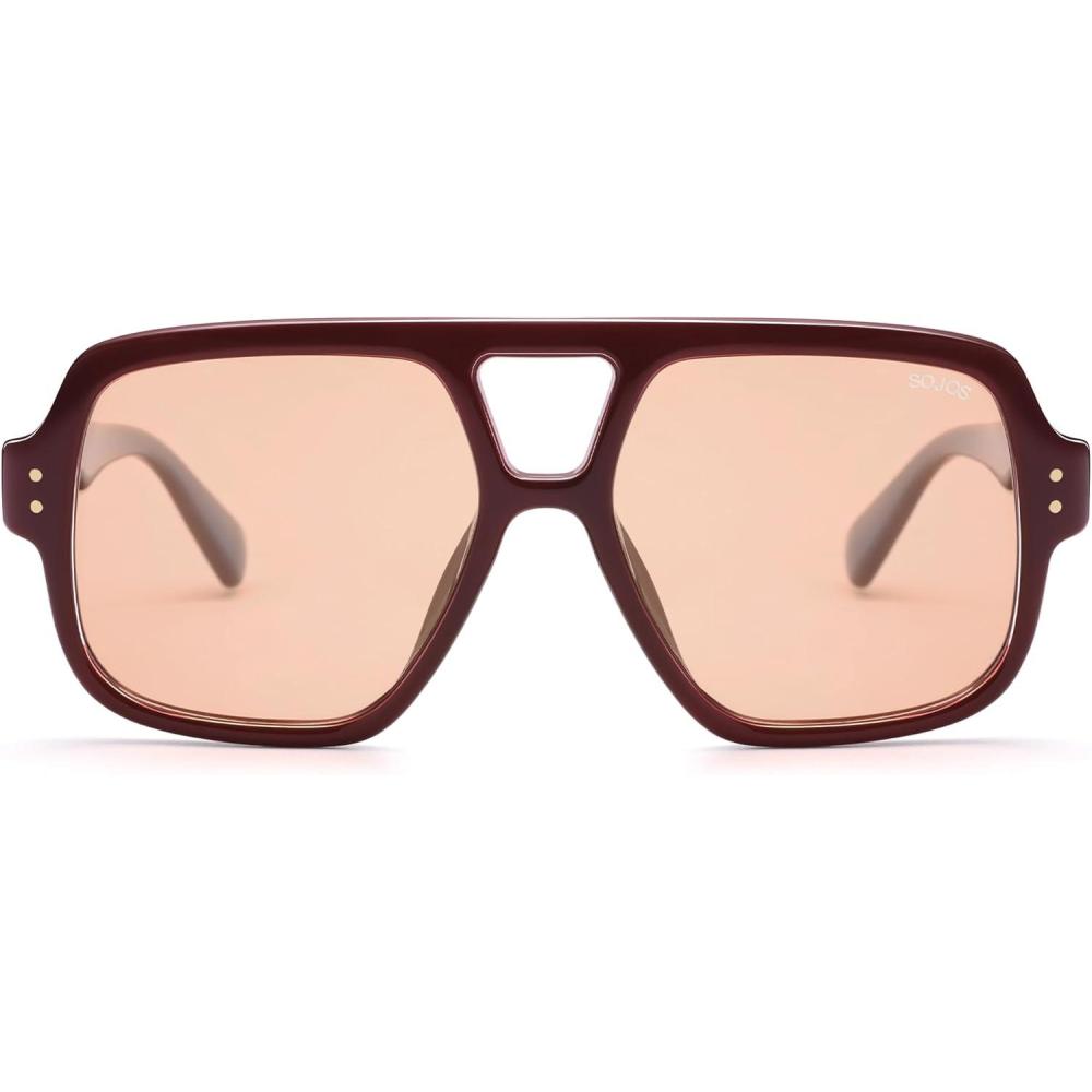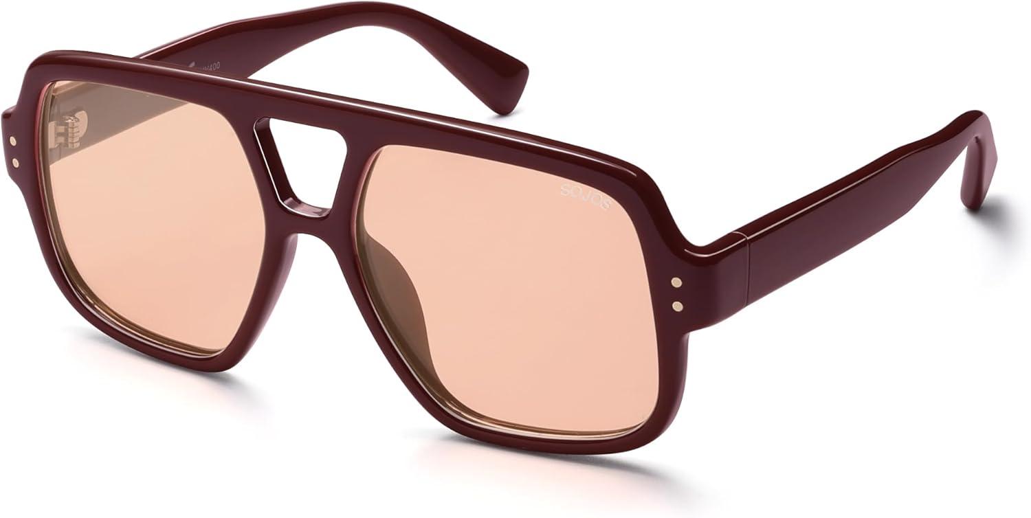 SOJOS Retro Square Polarized Aviator Sunglasses Womens Mens Trendy Vintage Aviators Shades SJ2613(Dark Red/Light Blush Tint)