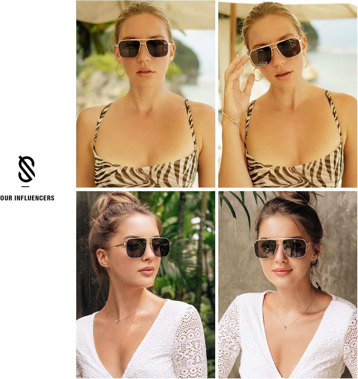 SOJOS Small Polarized Aviator Sunglasses for Men Women Classic Double Bridge Square Aviators SJ1179(Gold/Pink Mirrored)