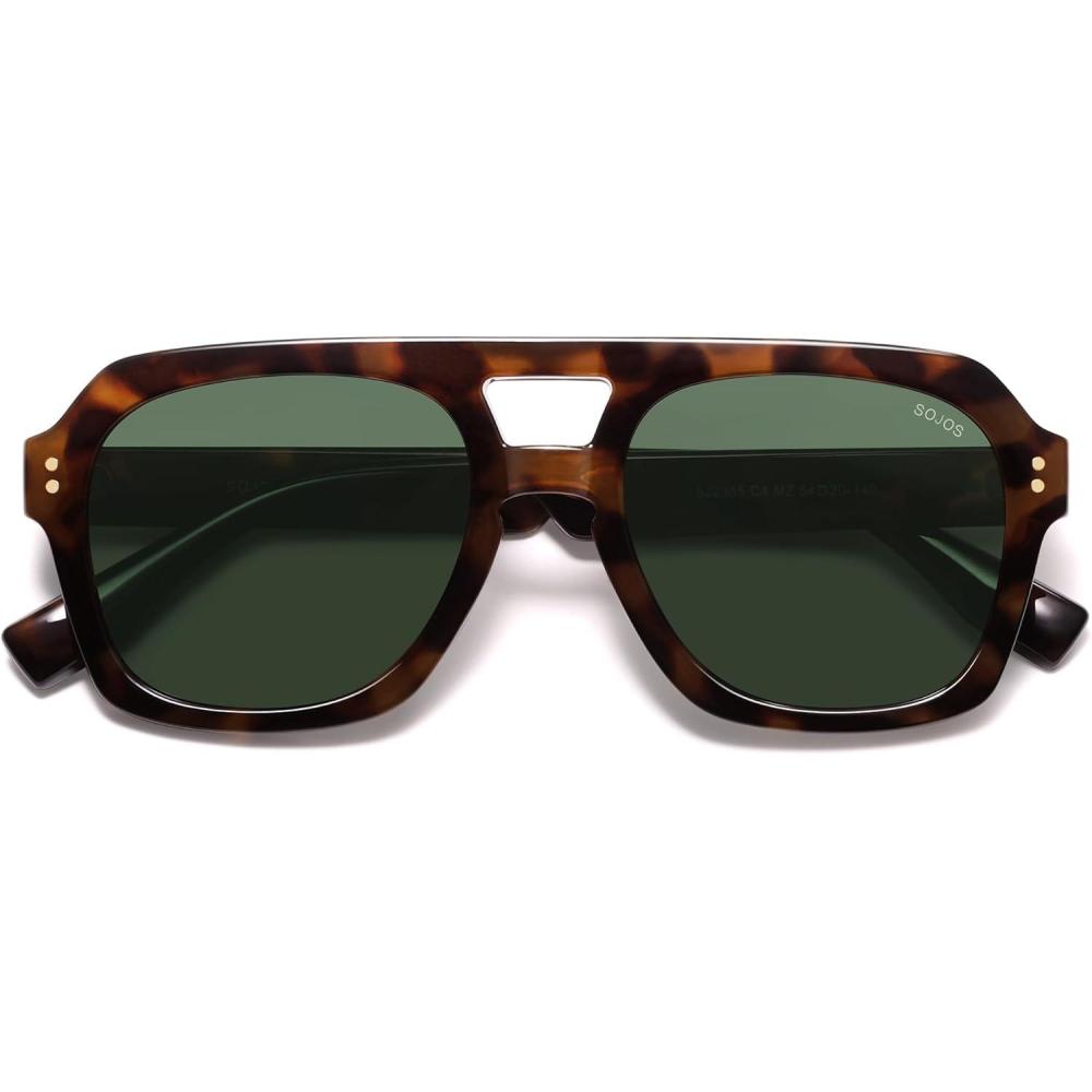 image:imageSOJOS Retro Thick Polarized Aviator Sunglasses for Women Men Large Trendy Bold Square Pilot Shades SJ2385TortoiseGreen