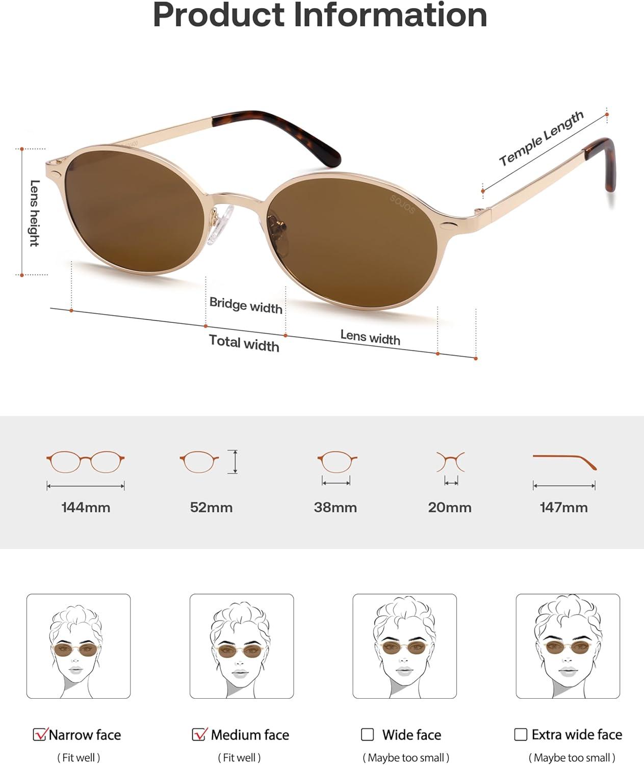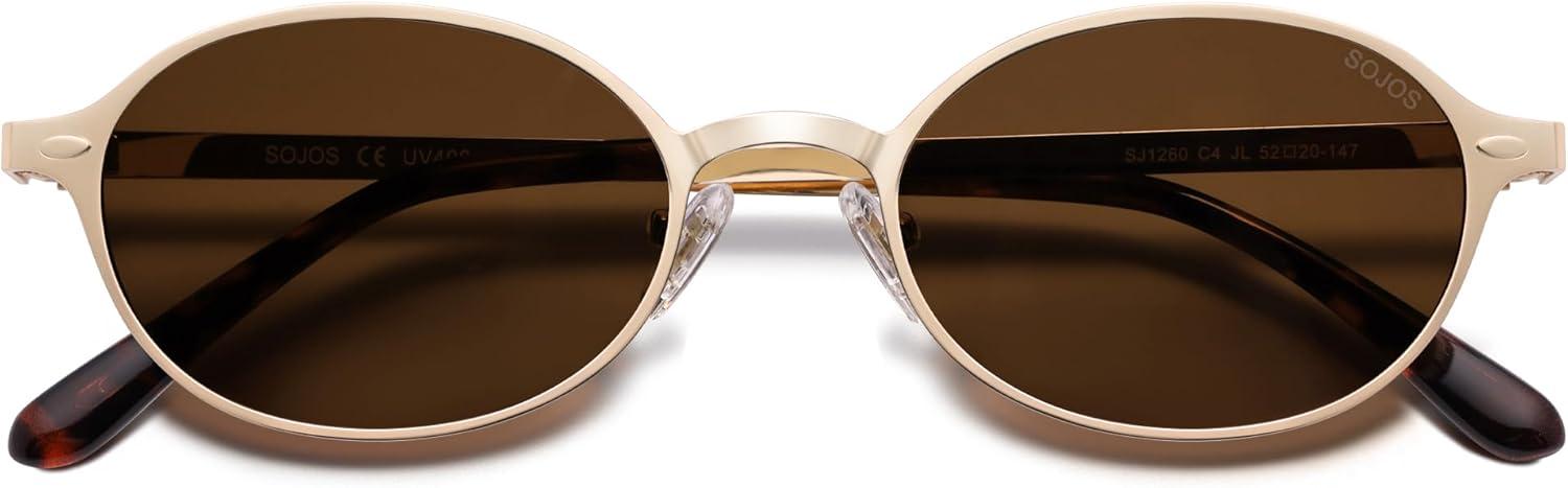 SOJOS Retro Trendy Oval Polarized Sunglasses Womens Mens, 80s 90s Chic Small Round Metal Frame Sunnies SJ1260(Shiny Gold/Brown)