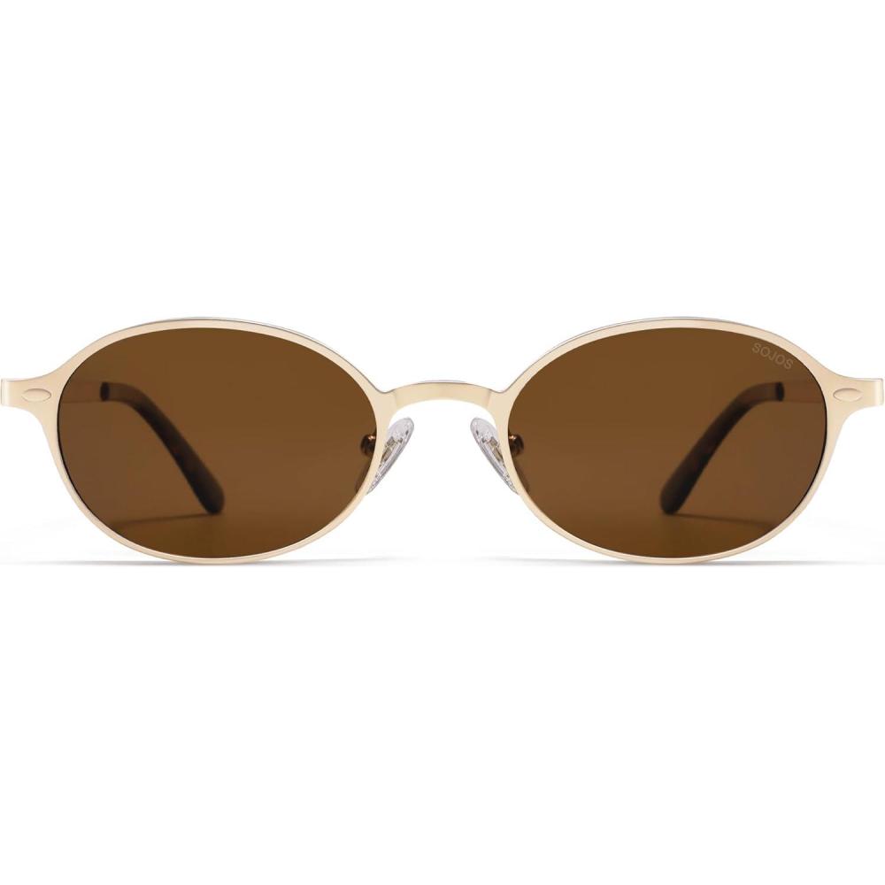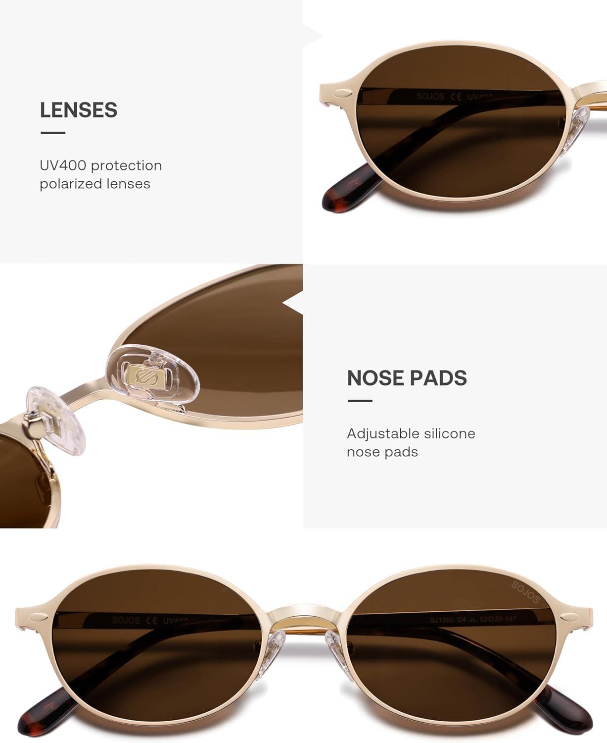 imageSOJOS Retro Trendy Oval Polarized Sunglasses Womens Mens 80s 90s Chic Small Round Metal Frame Sunnies SJ1260Shiny GoldBrown