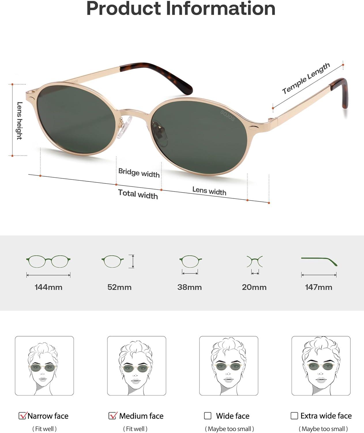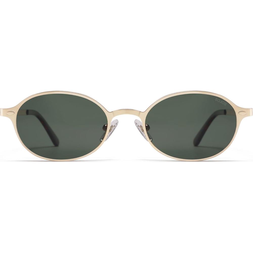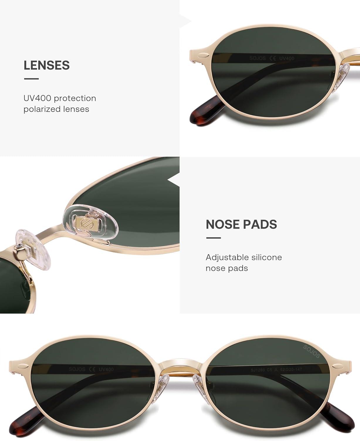 imageSOJOS Retro Trendy Oval Polarized Sunglasses Womens Mens 80s 90s Chic Small Round Metal Frame Sunnies SJ1260Shiny GoldGreen