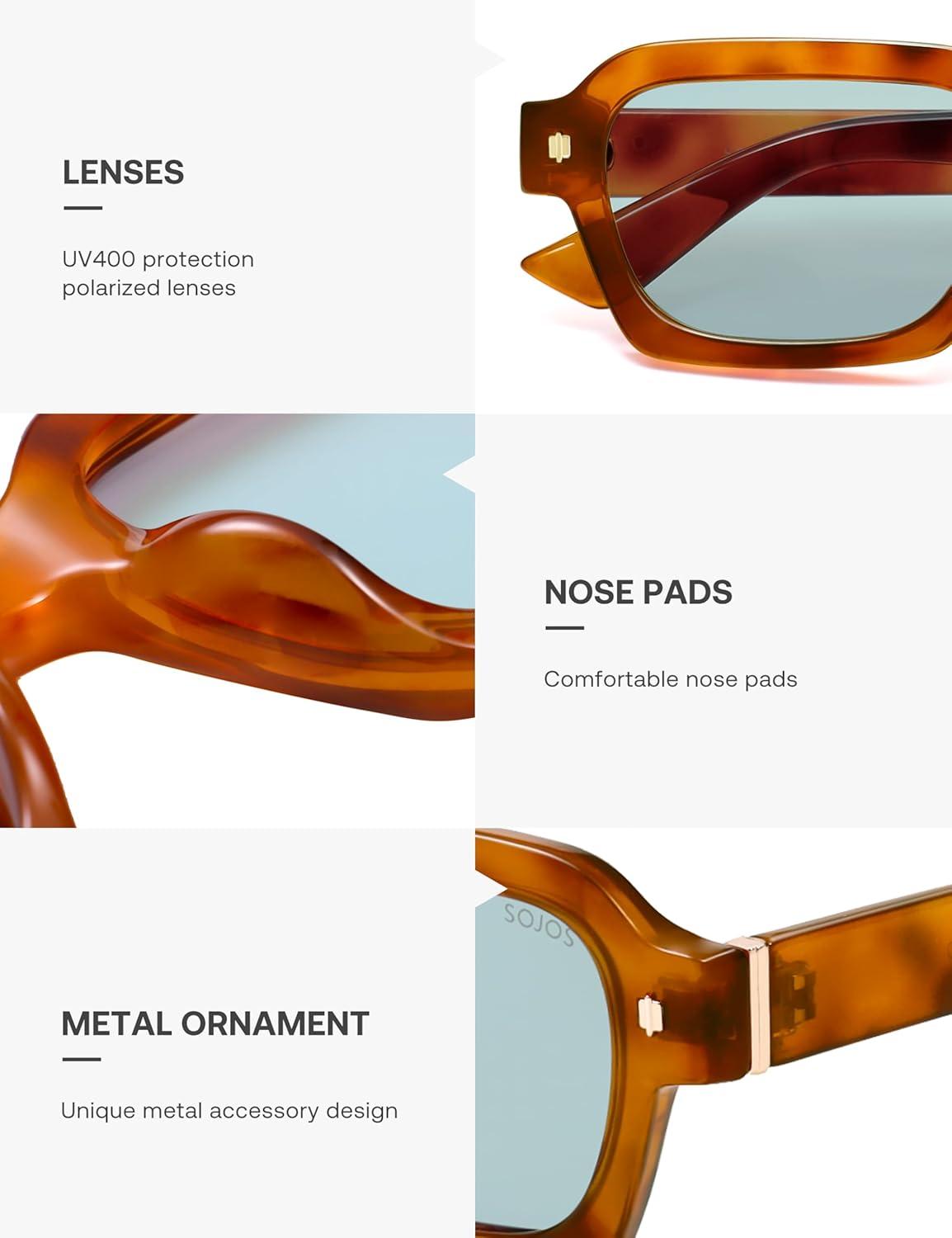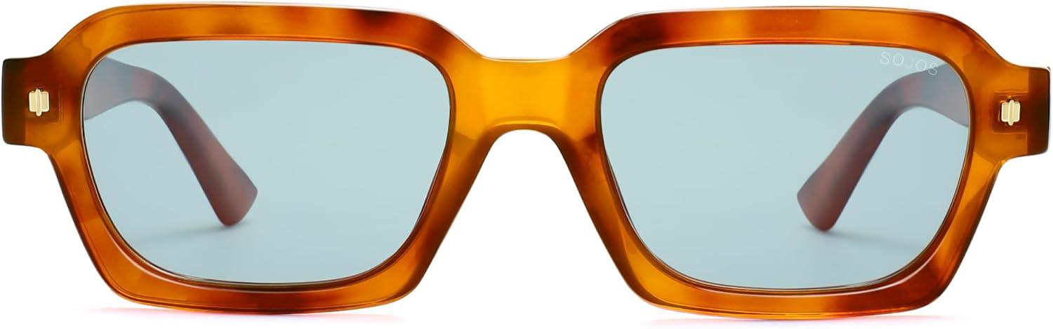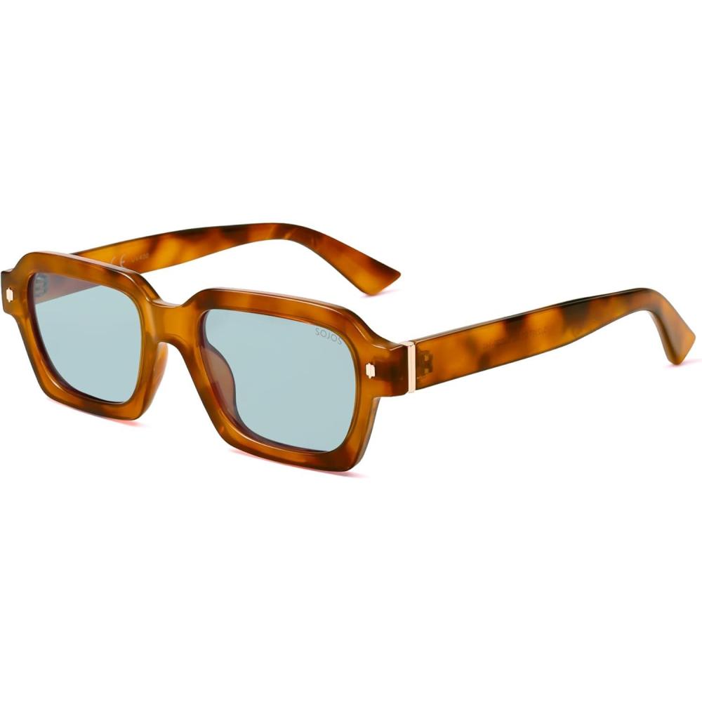 imageSOJOS Retro Trendy Polarized Sunglasses for Men Women Vintage Square Mens Shades SJ2397Brown Tortoise Frame Blue Lens