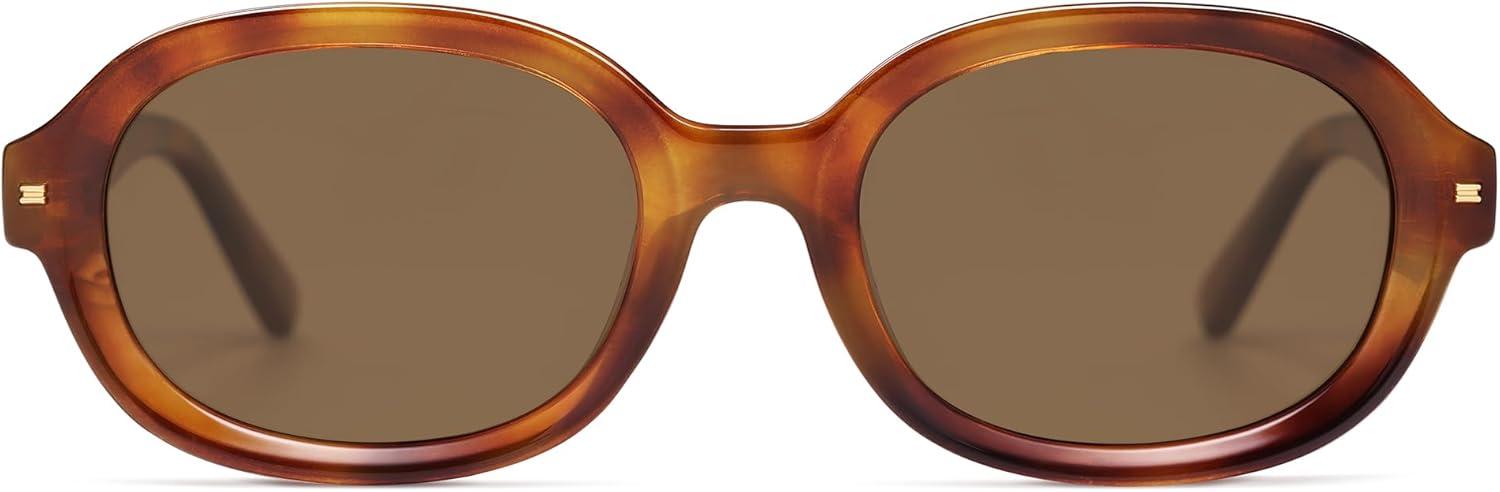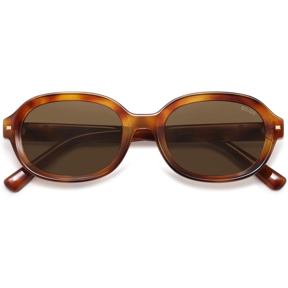 imageSOJOS Retro Vintage Oval Polarized Sunglasses Womens Mens 80s 90s Trendy Round Sunnies SJ2603Yellow TortoiseBrown