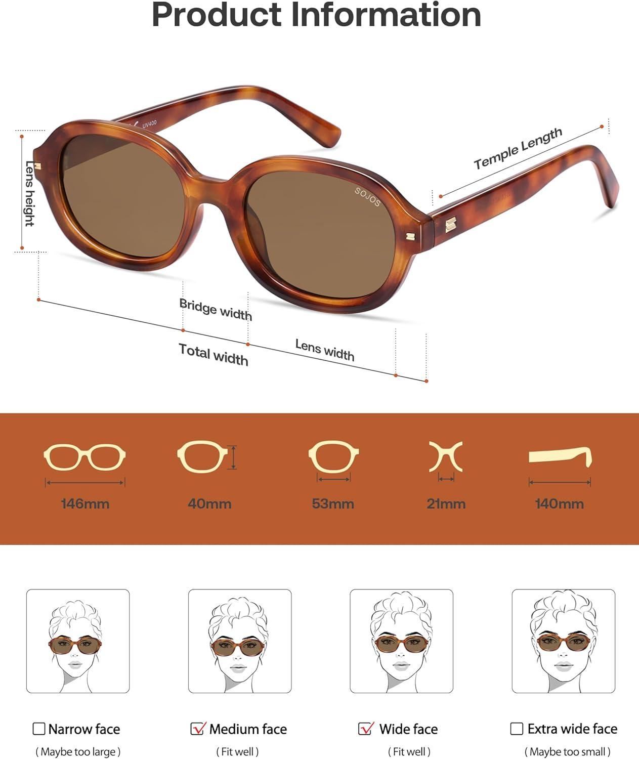 SOJOS Retro Vintage Oval Polarized Sunglasses Womens Mens 80s 90s Trendy Round Sunnies SJ2603(Redish Brown Pattern/Greyish Green)