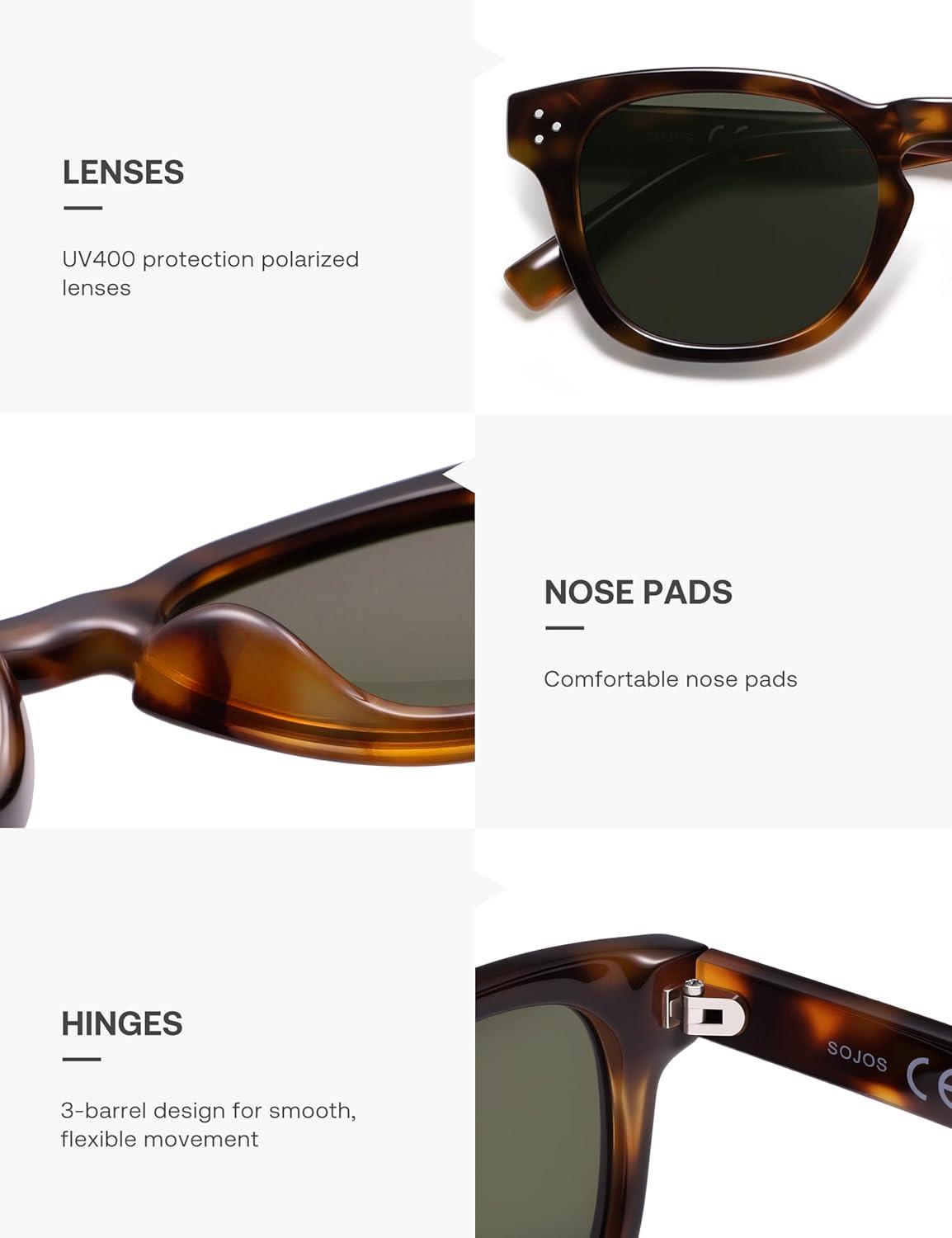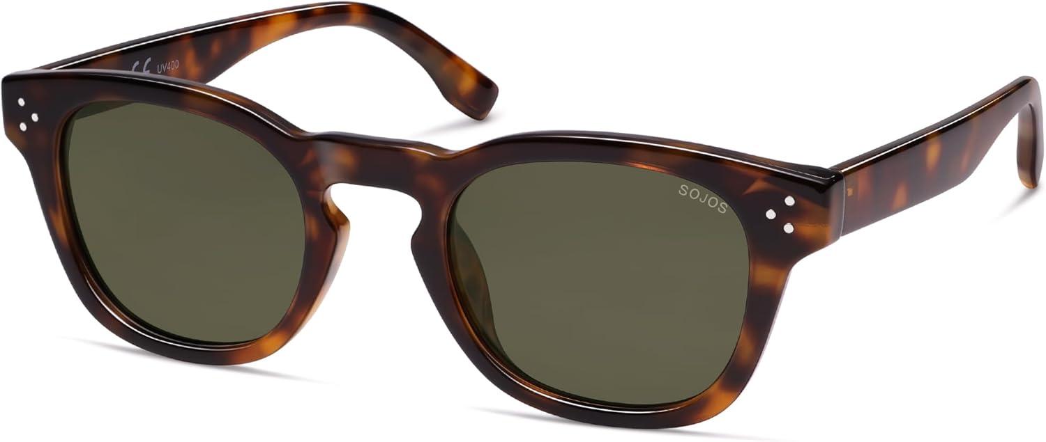 SOJOS Retro Vintage Polarized Sunglasses Womens Mens, 70s 80s Square Panto Style UV400 Shades SJ2662(Brown Tortoise/Green)