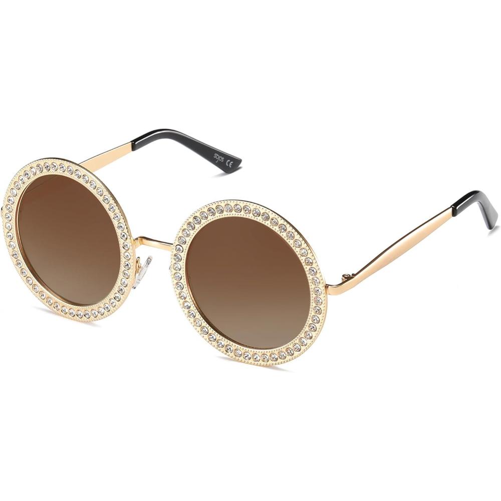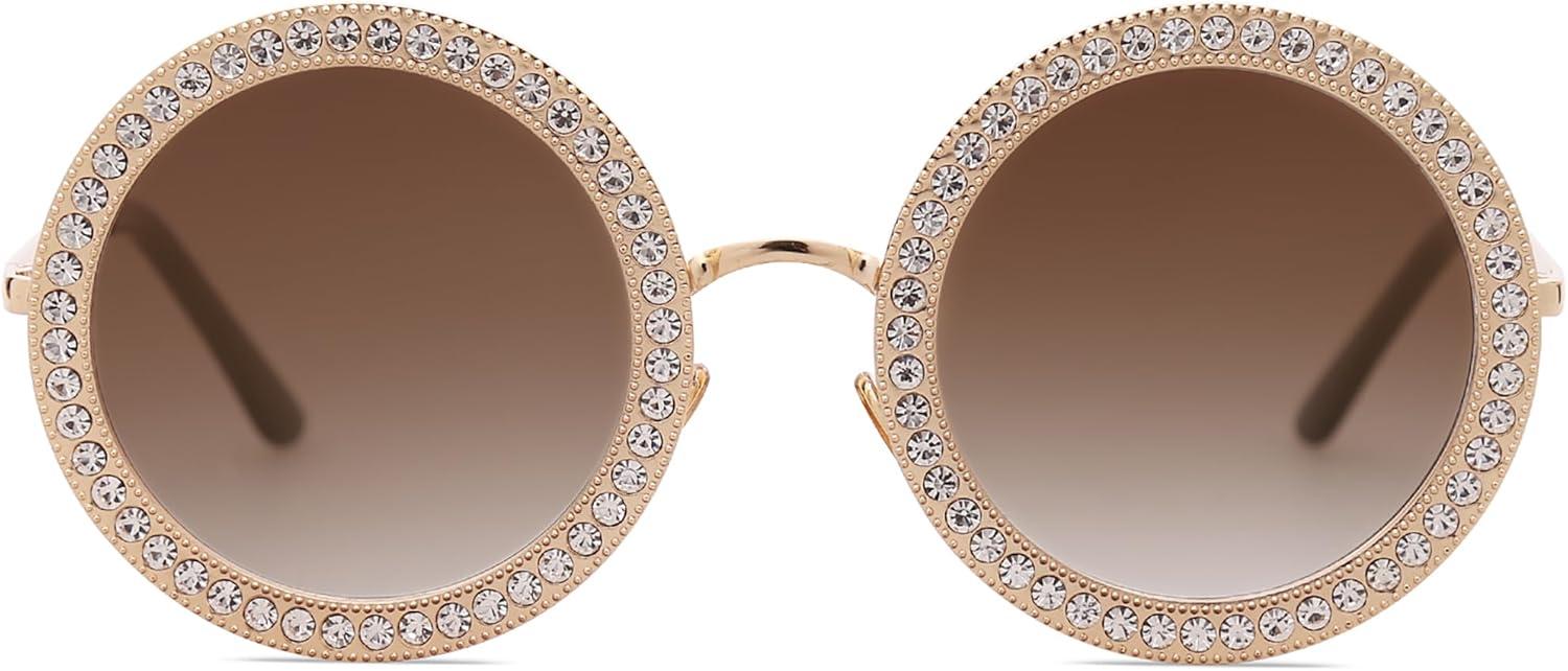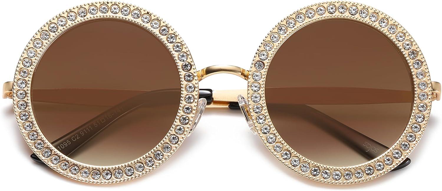 imageSOJOS Shining Oversized Round Rhinestone Sunglasses Festival Gem Sunnies SJ1095C02 Gold FrameGradient Brown Lens With Crystal Diamonds