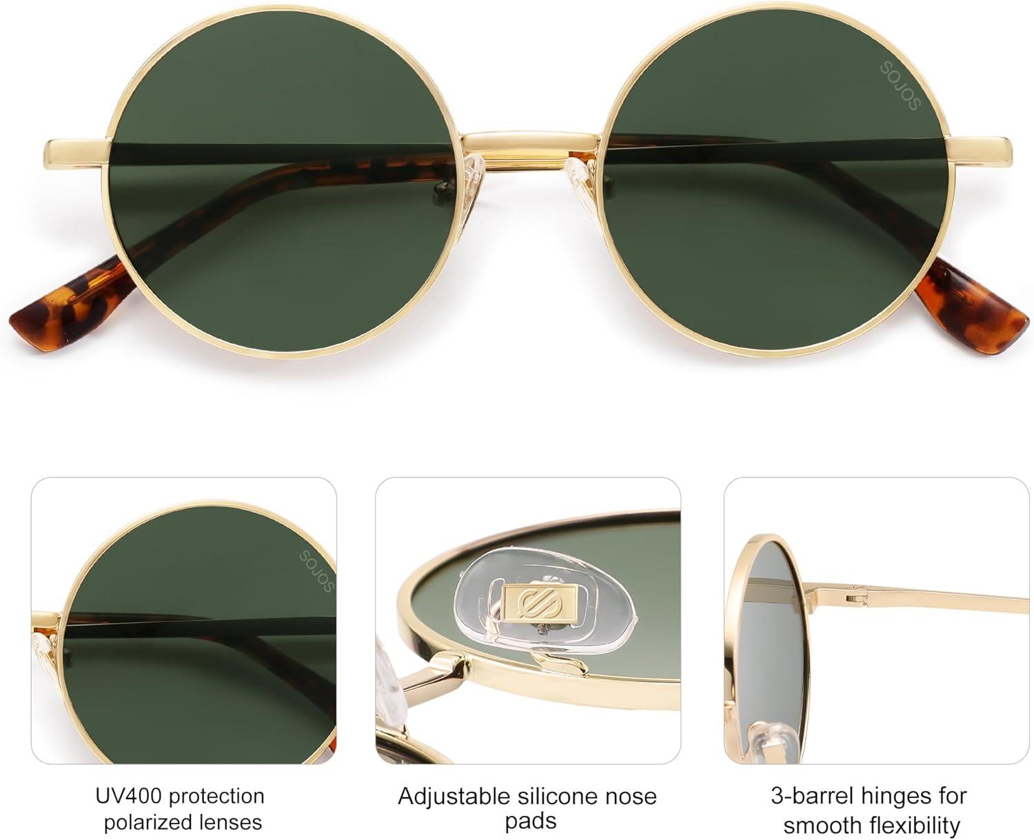 imageSOJOS Small Round Polarized Sunglasses for Women Men Retro Sun Glasses Vintage Shades UV400 Protection SJ1243Shiny Gold  Green Lens